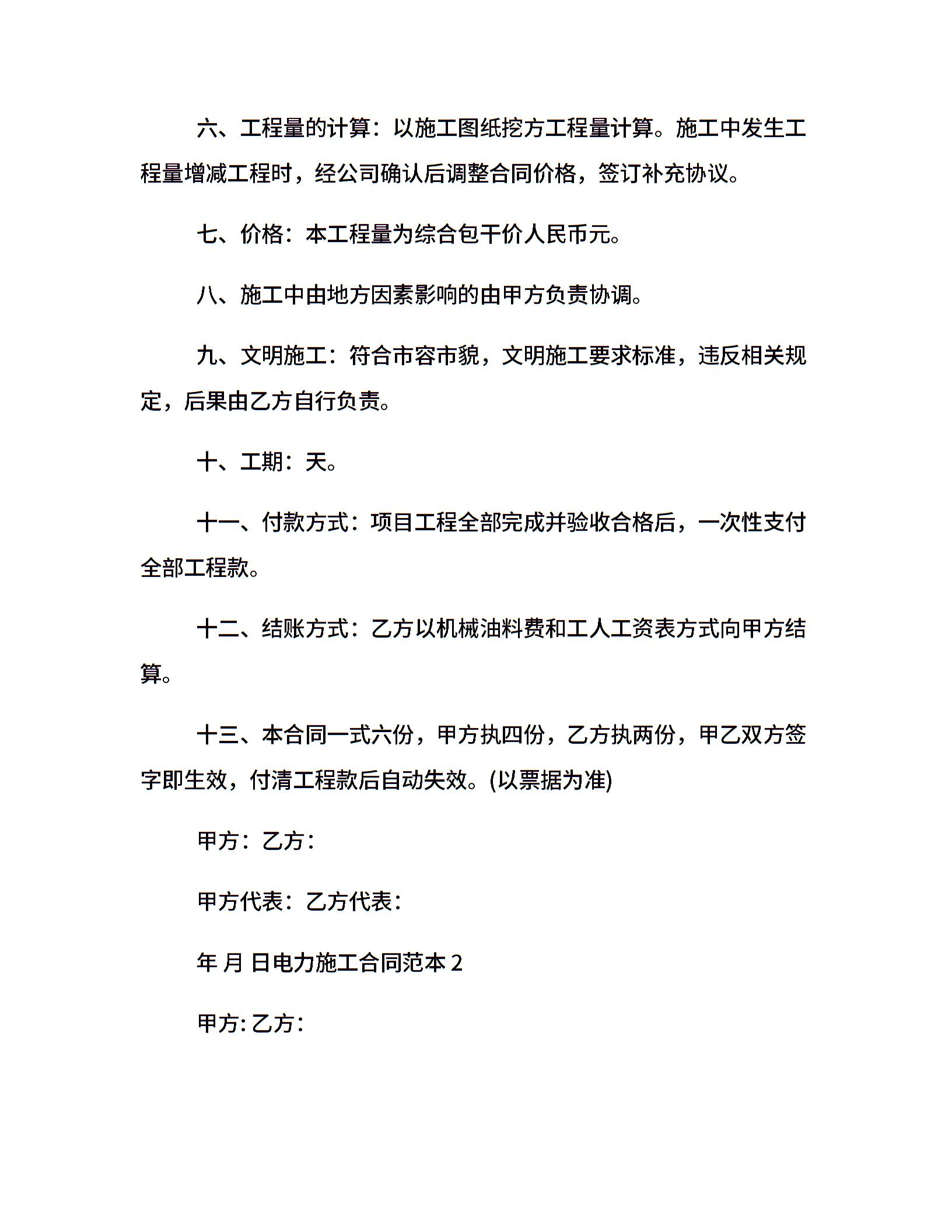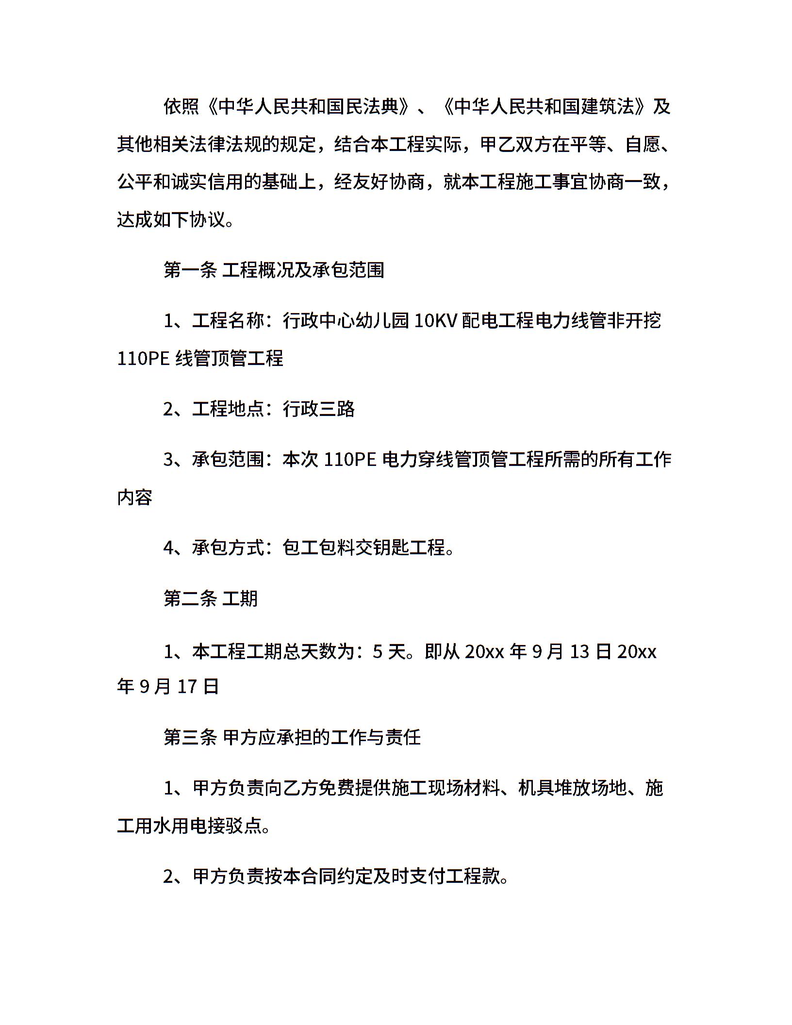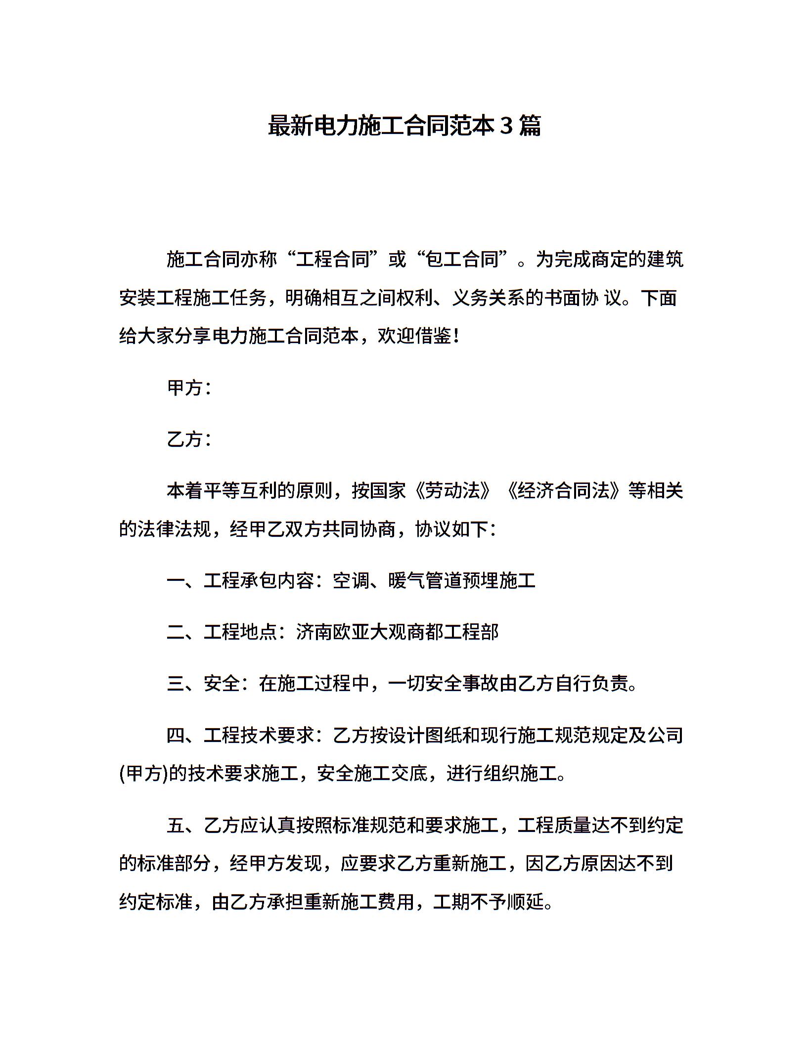 最新电力施工合同范本3篇