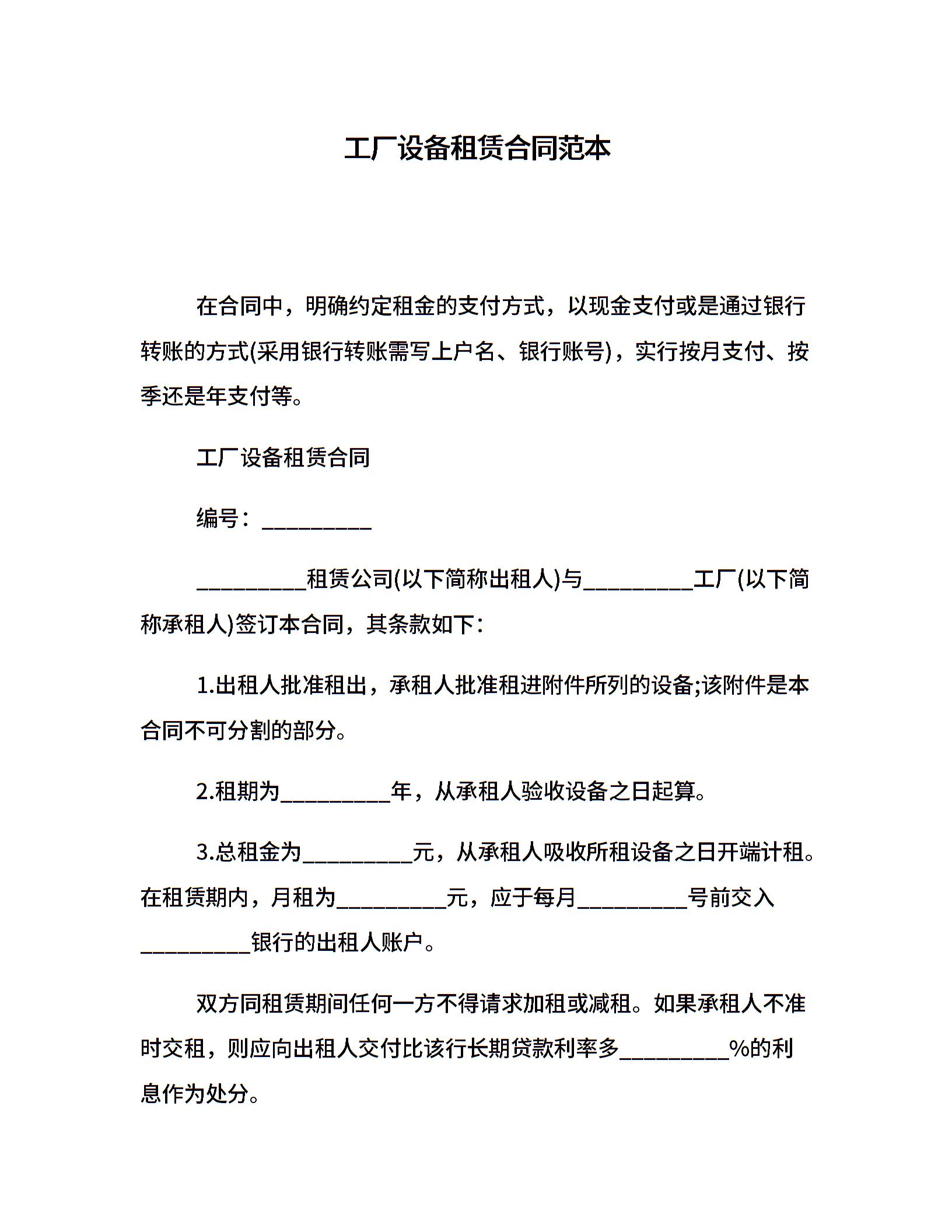 工厂设备租赁合同范本