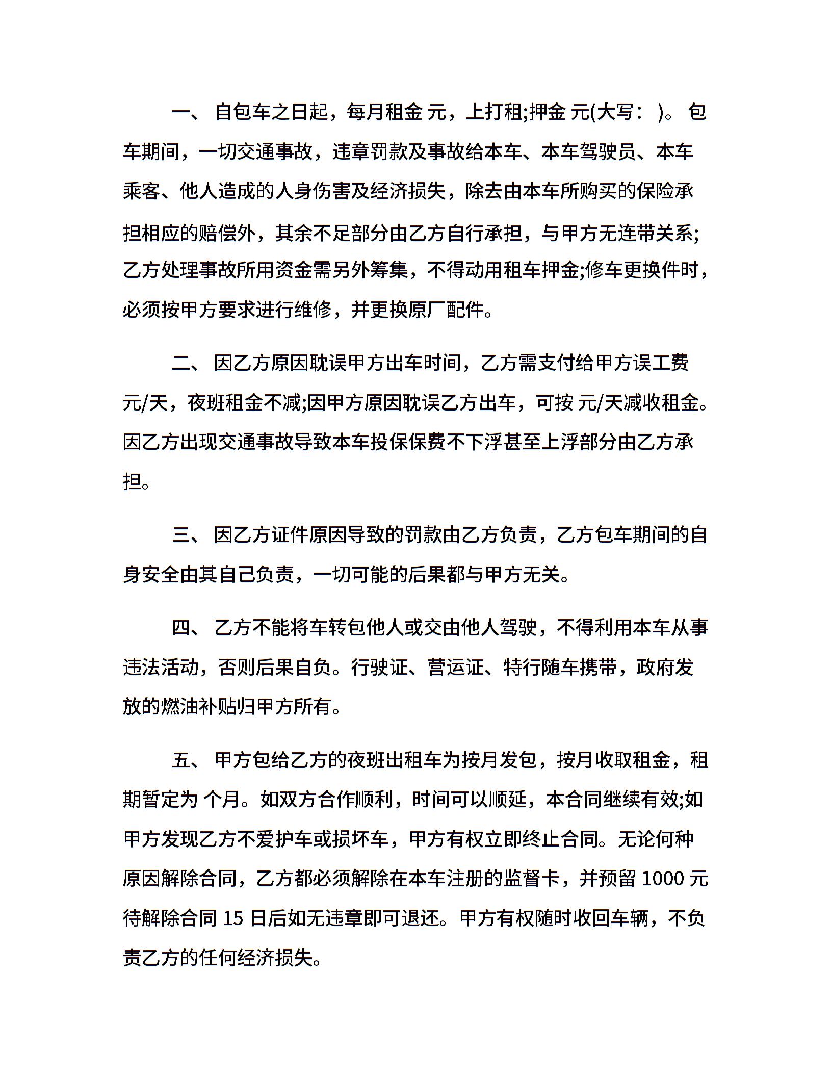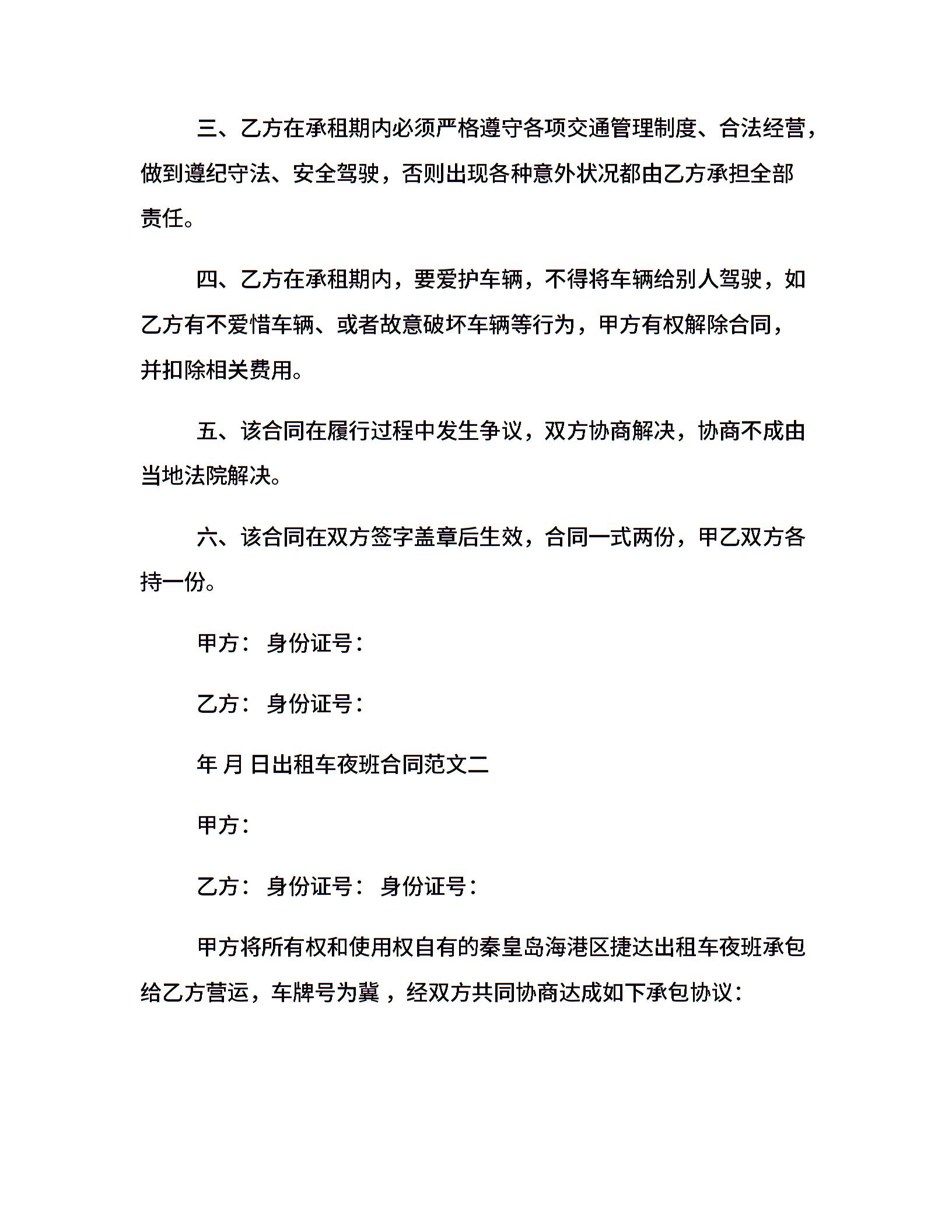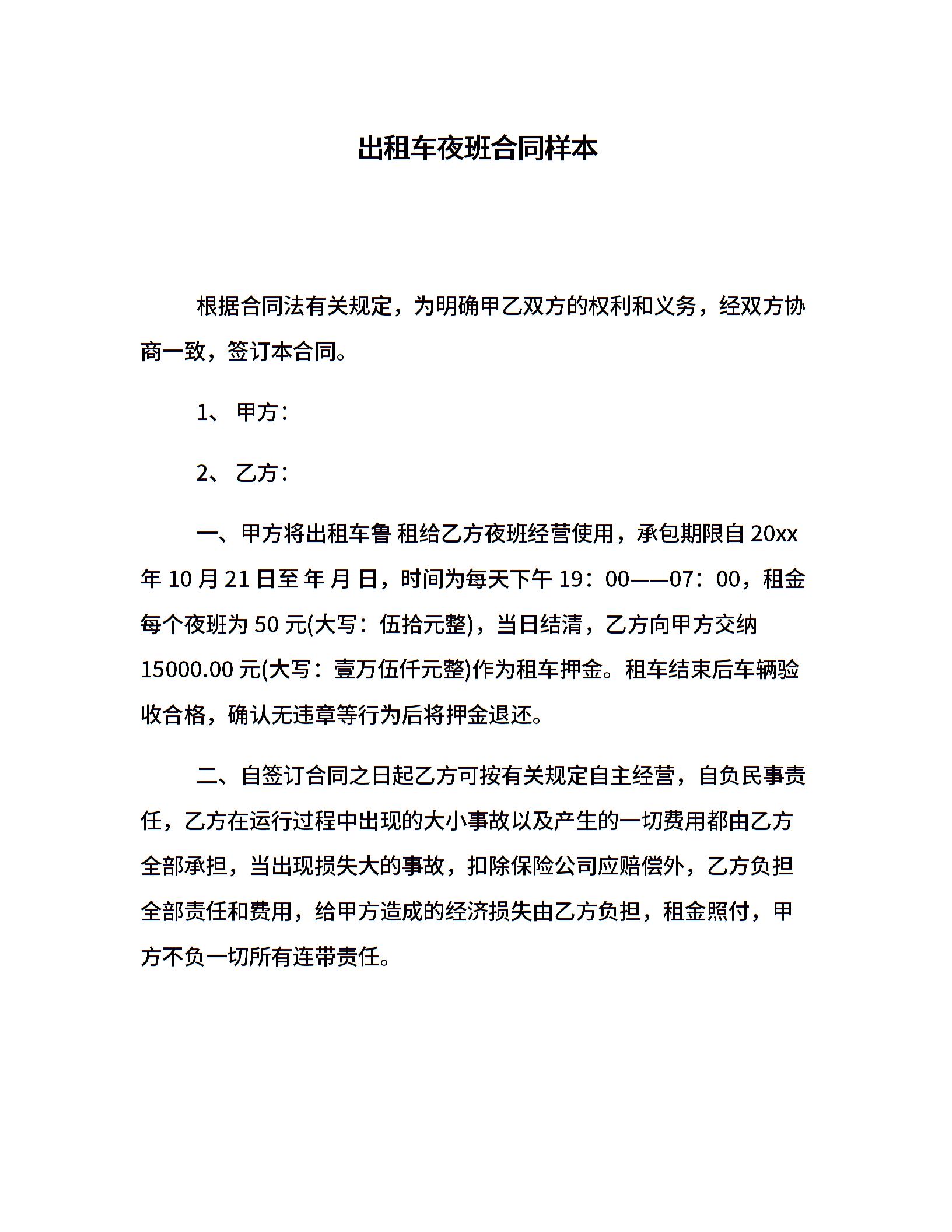 出租车夜班合同样本