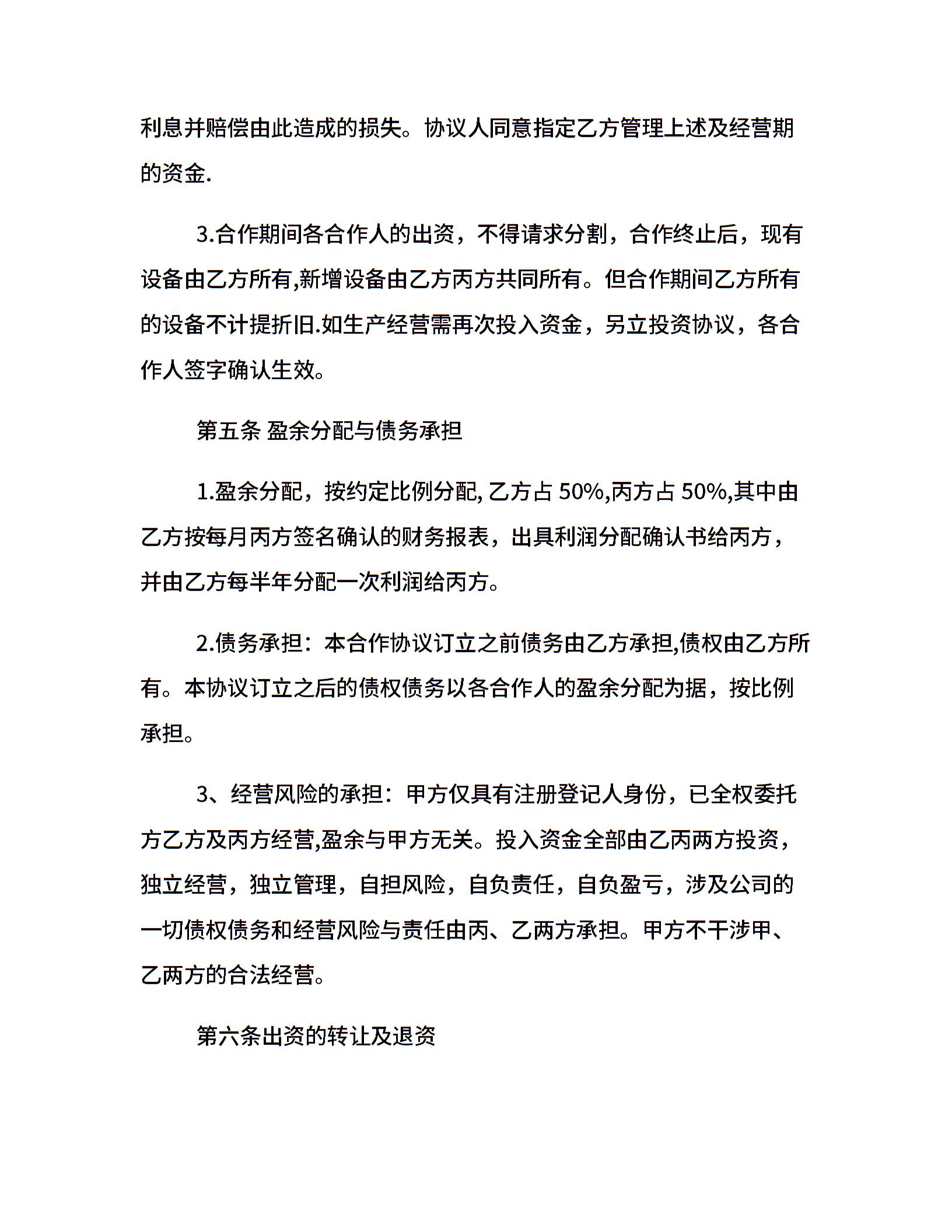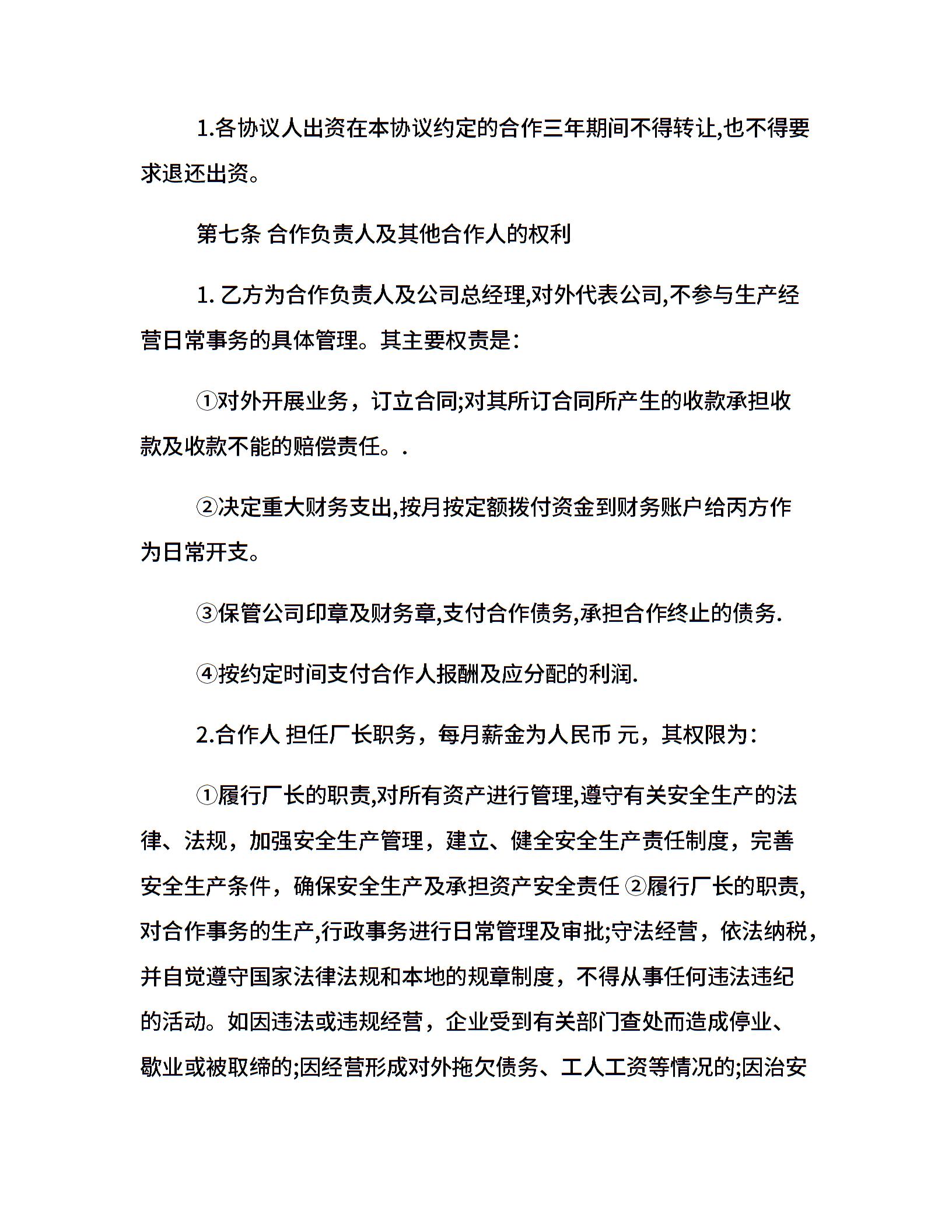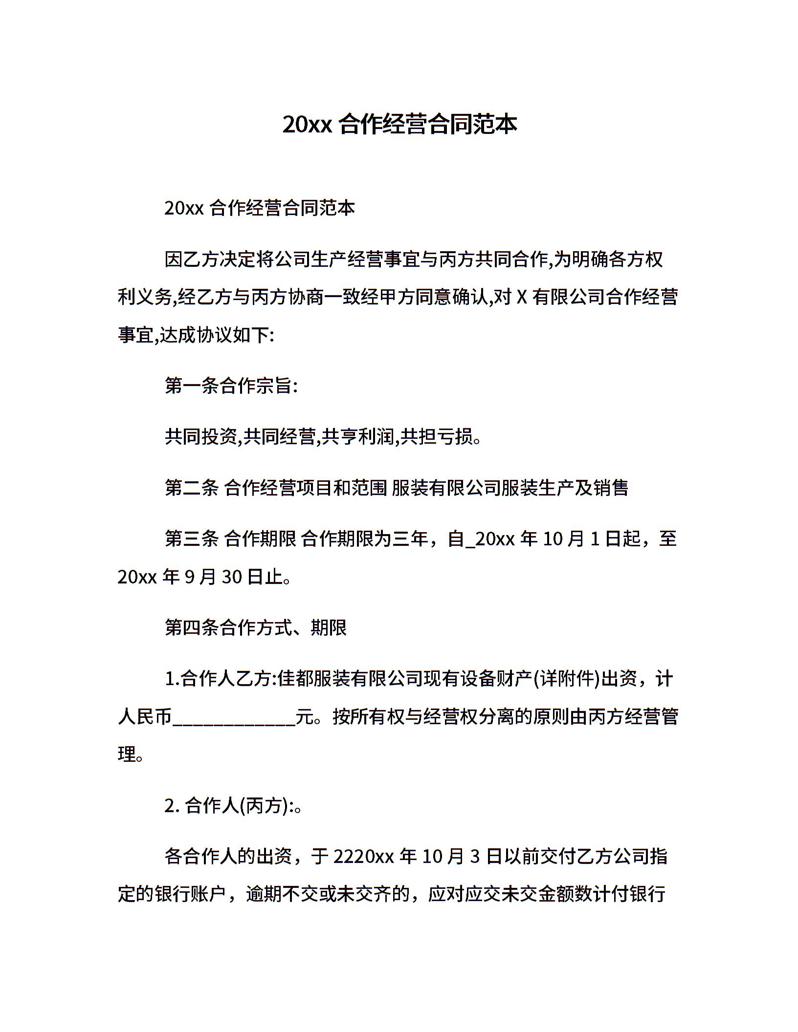 20xx合作经营合同范本