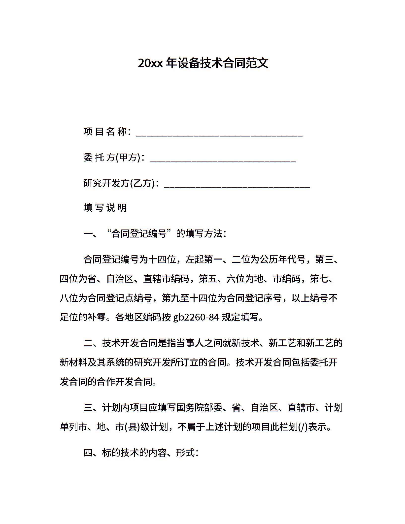 20xx年设备技术合同范文