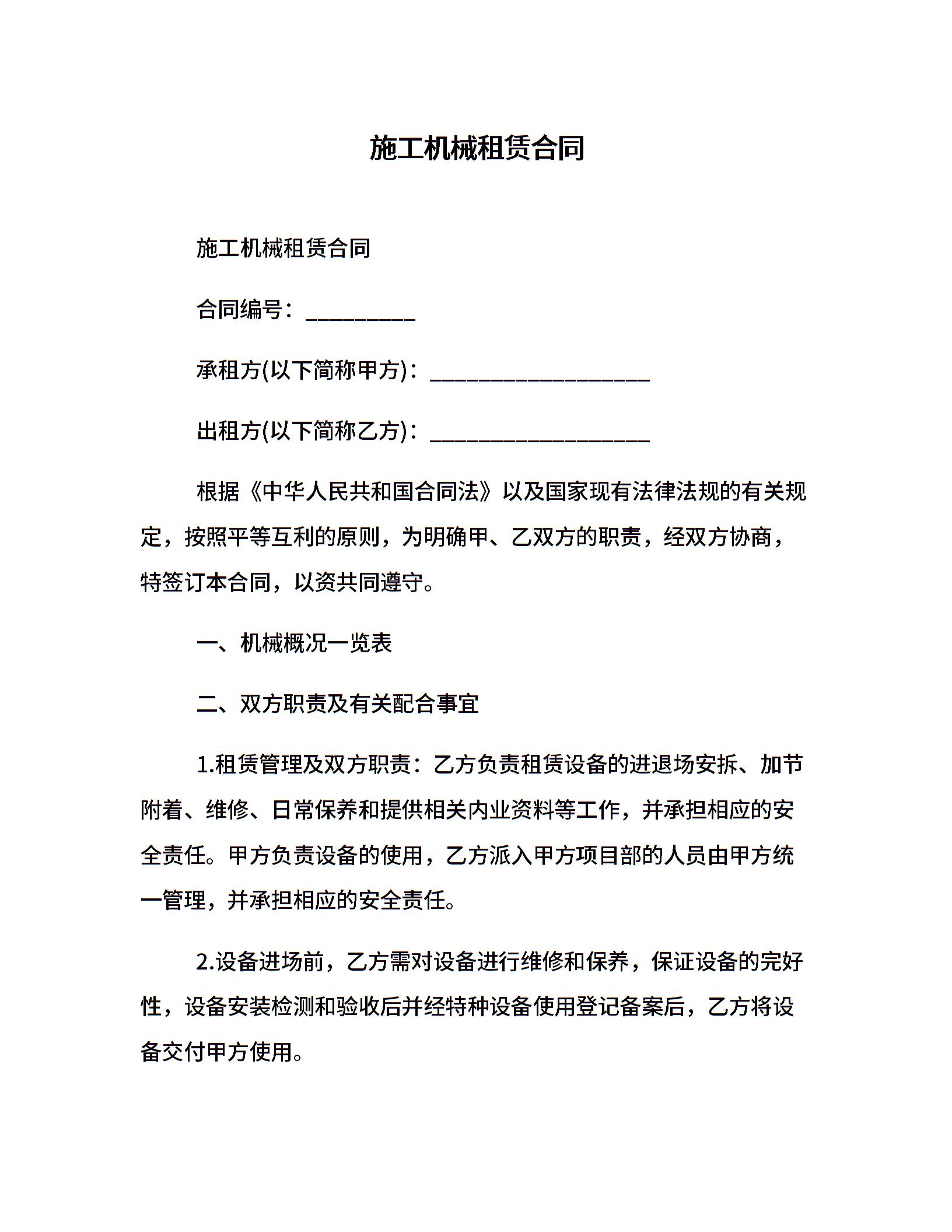 施工机械租赁合同