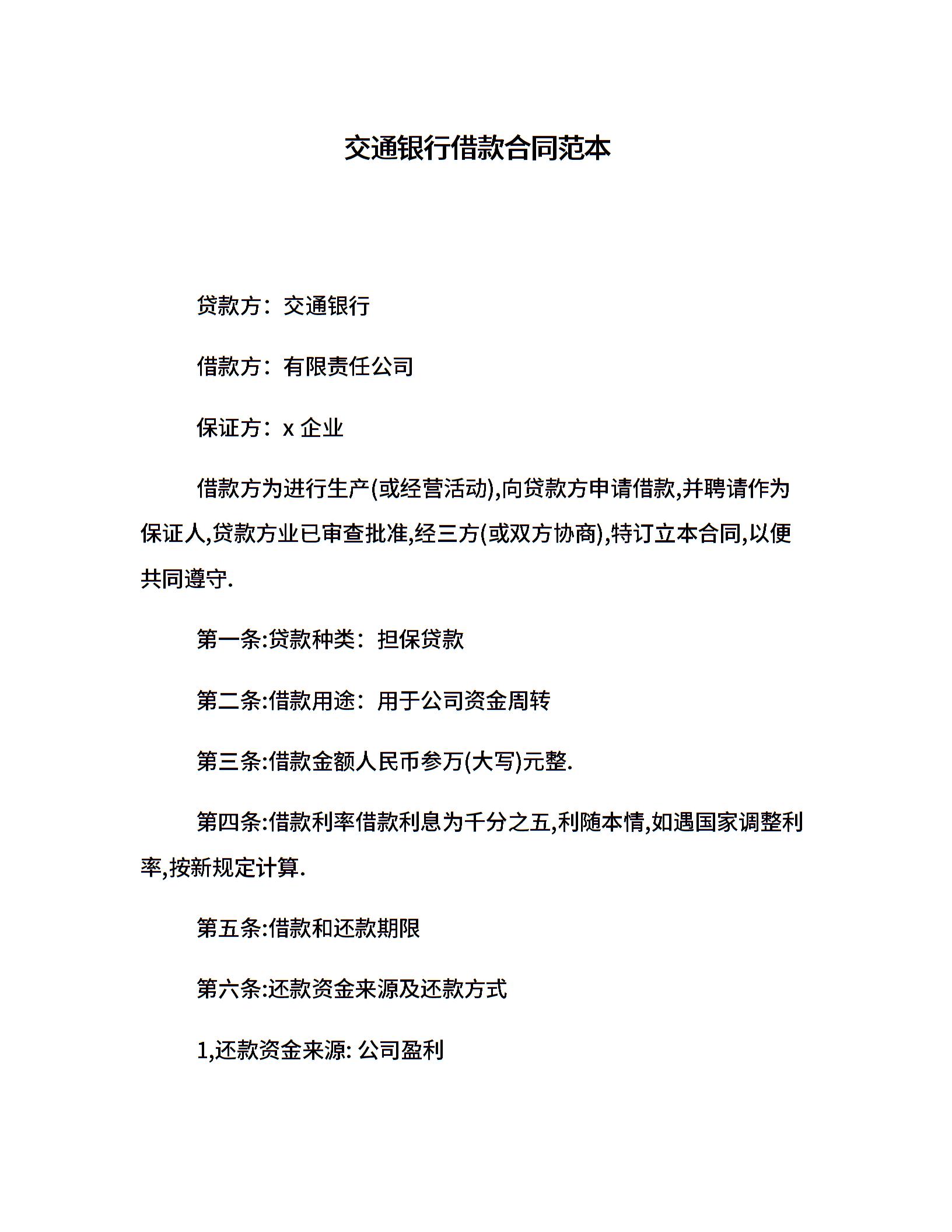交通银行借款合同范本