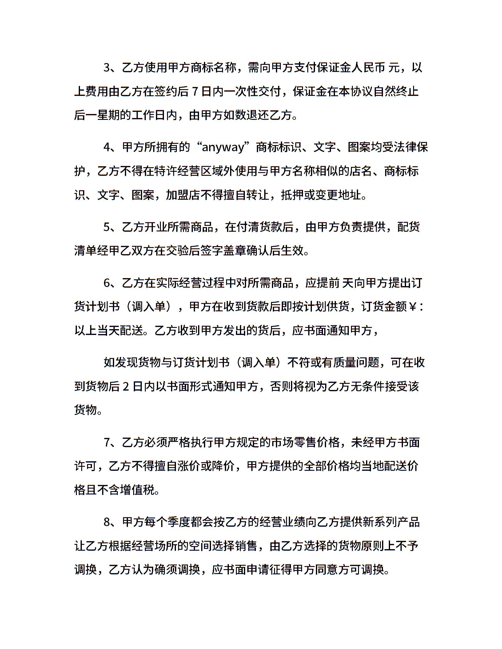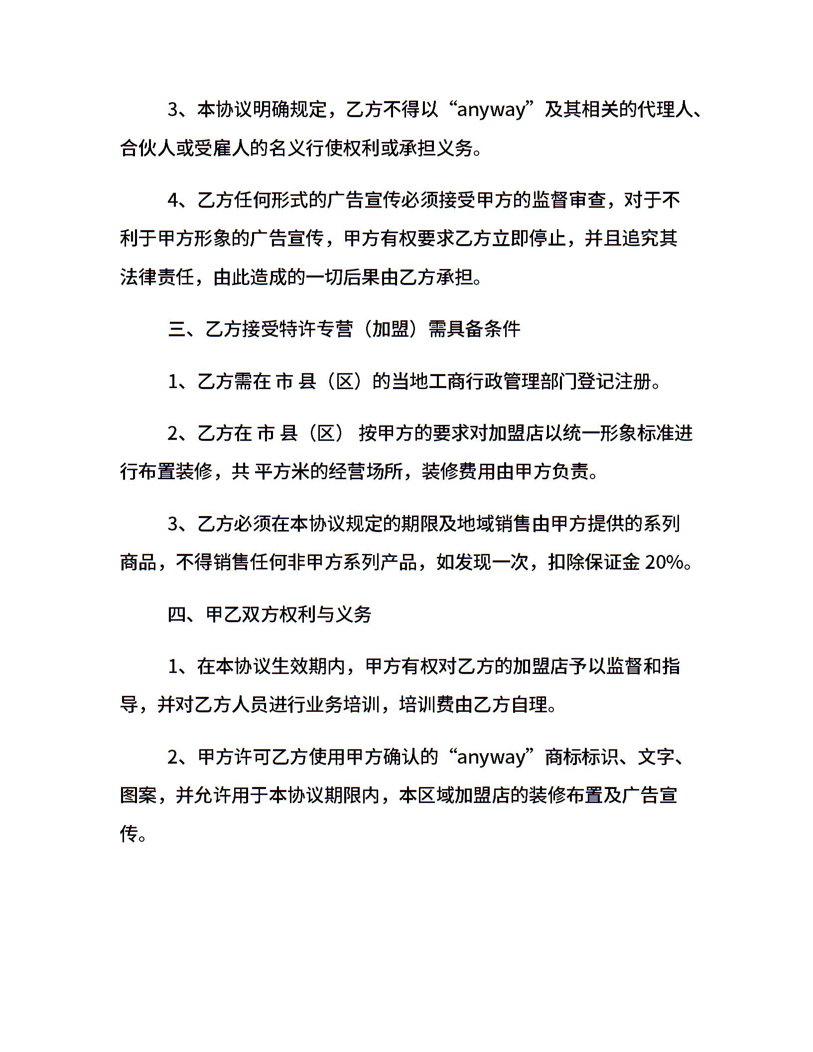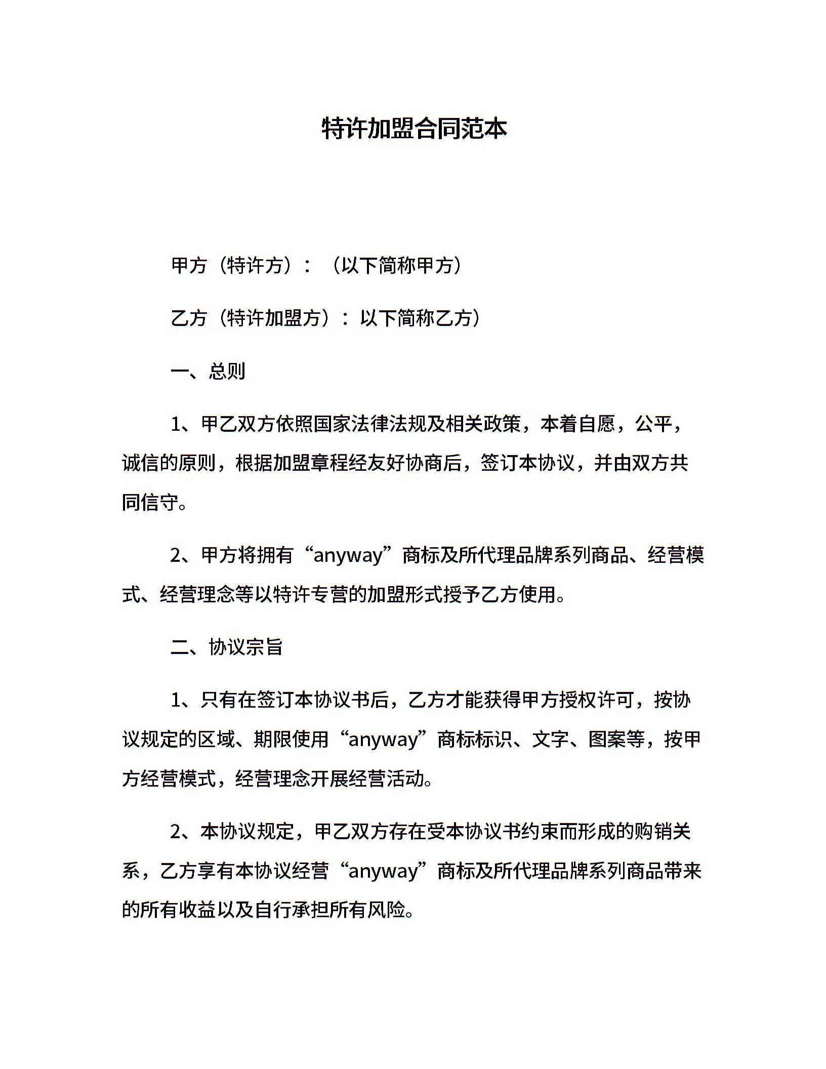 特许加盟合同范本