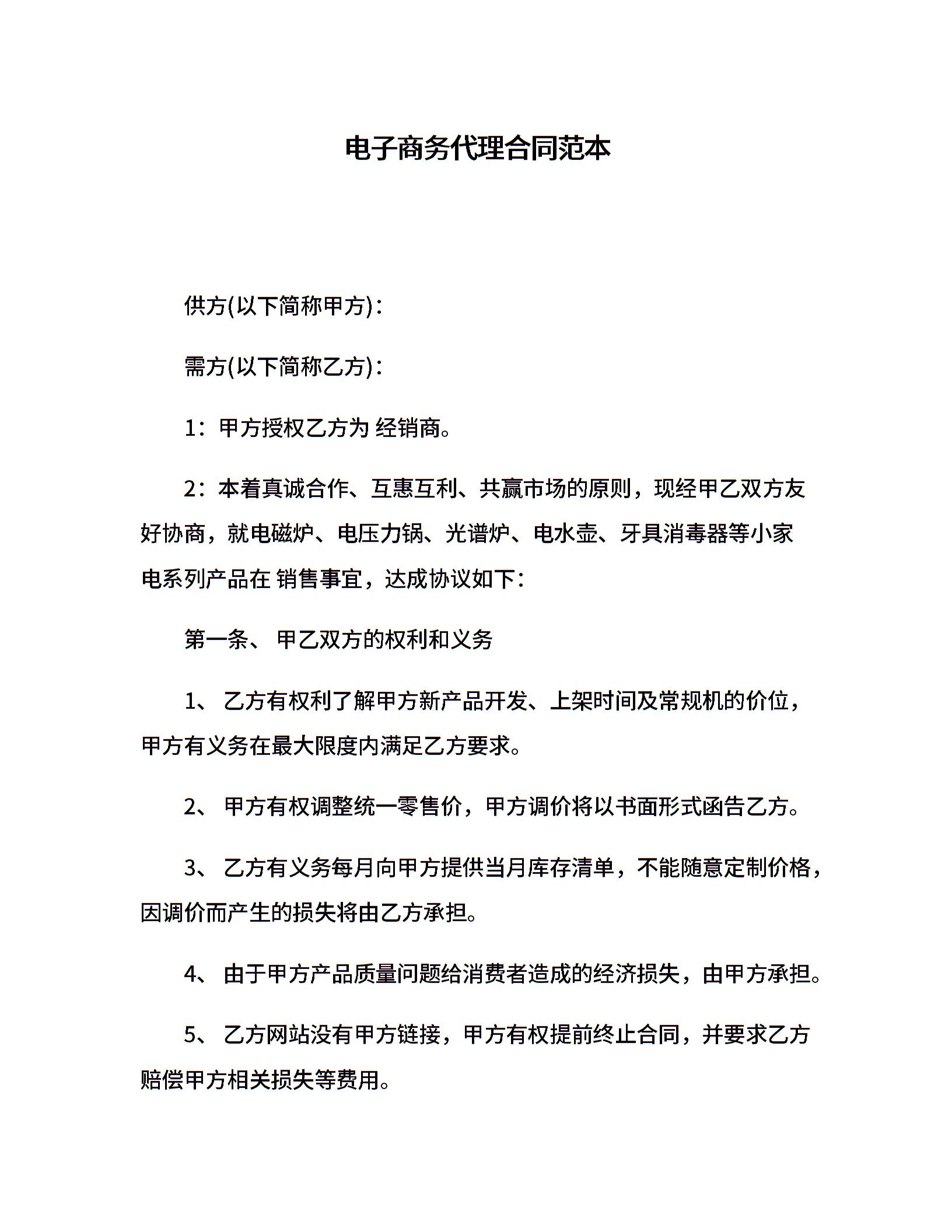 电子商务代理合同范本