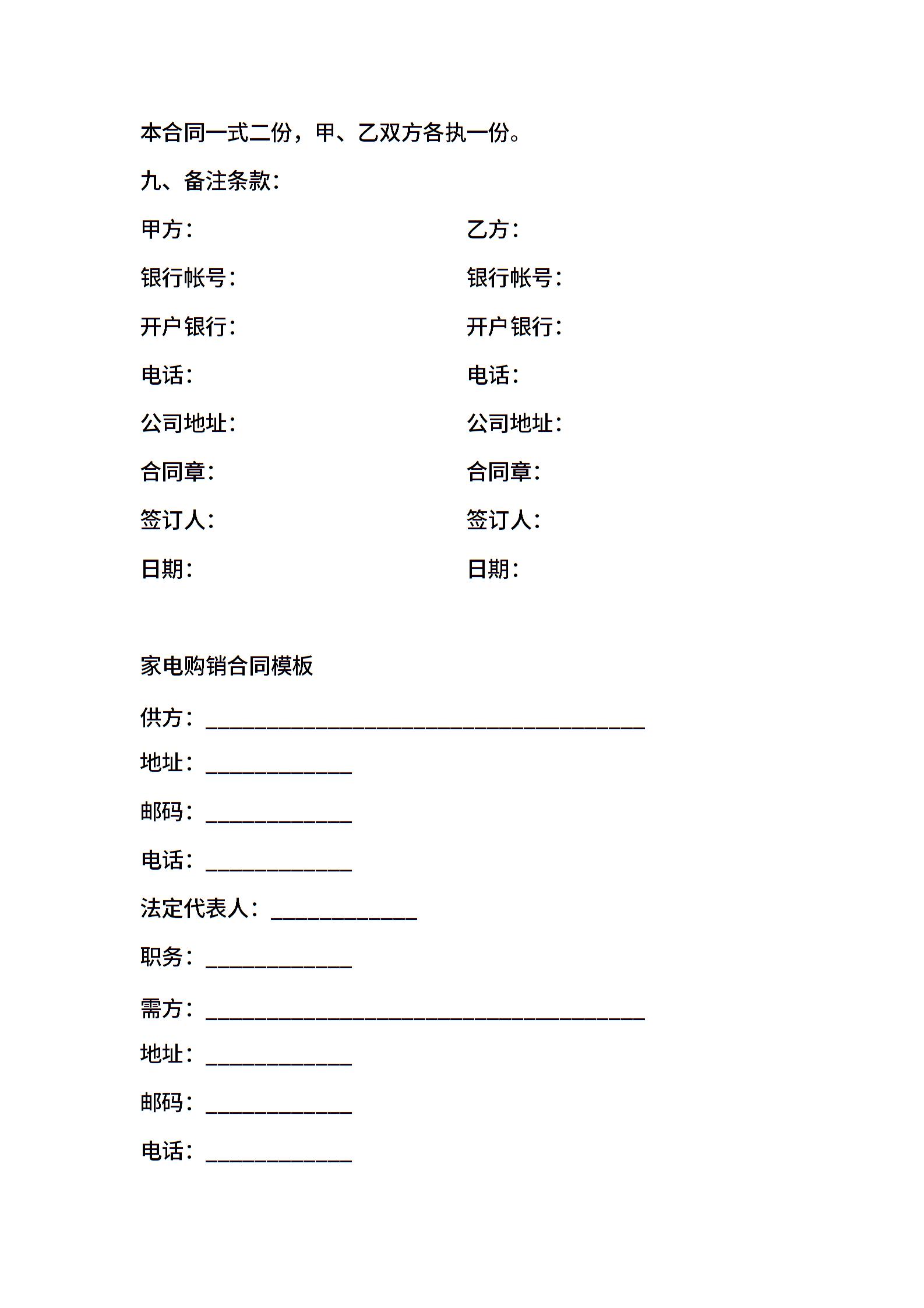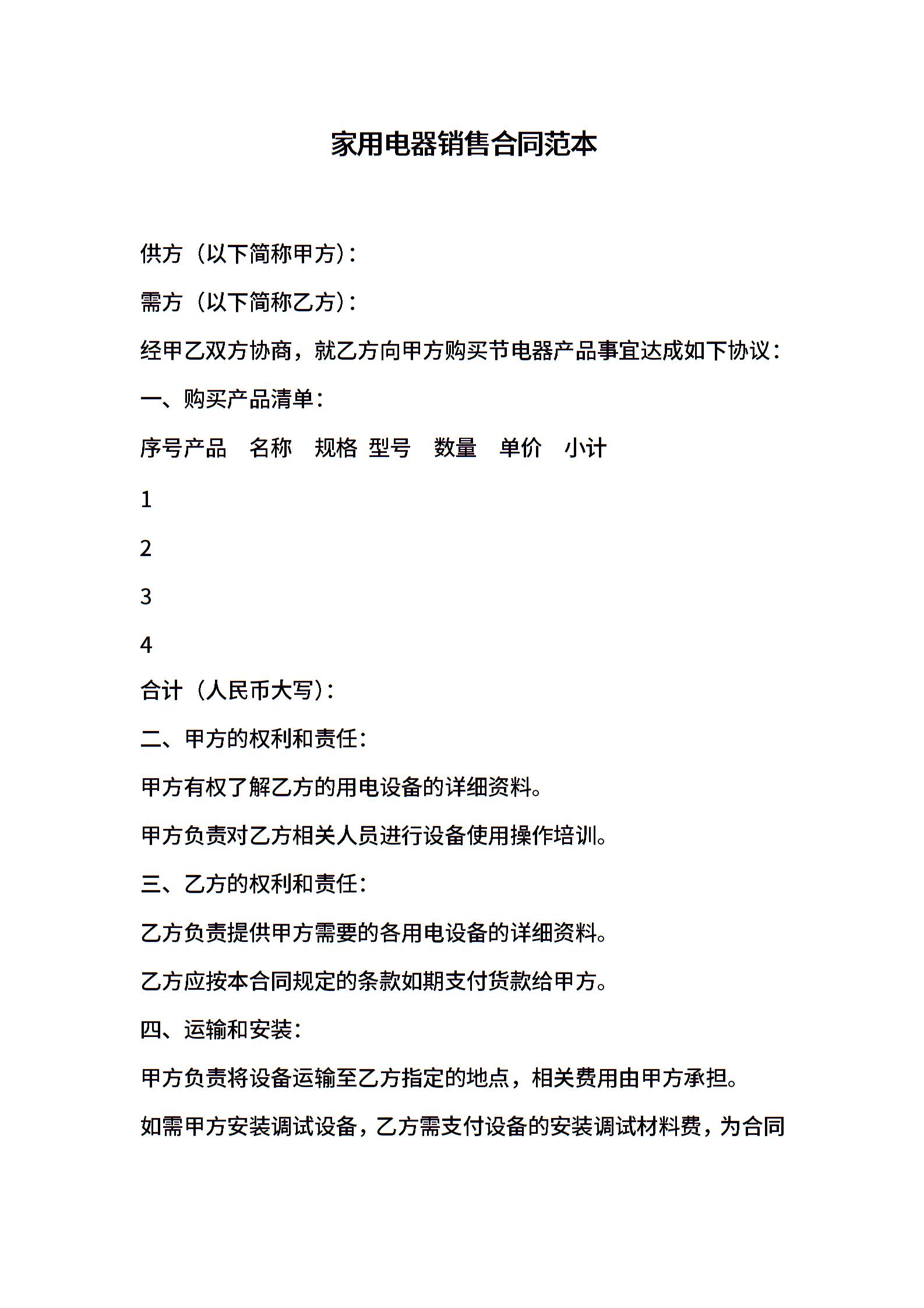 家用电器销售合同范本