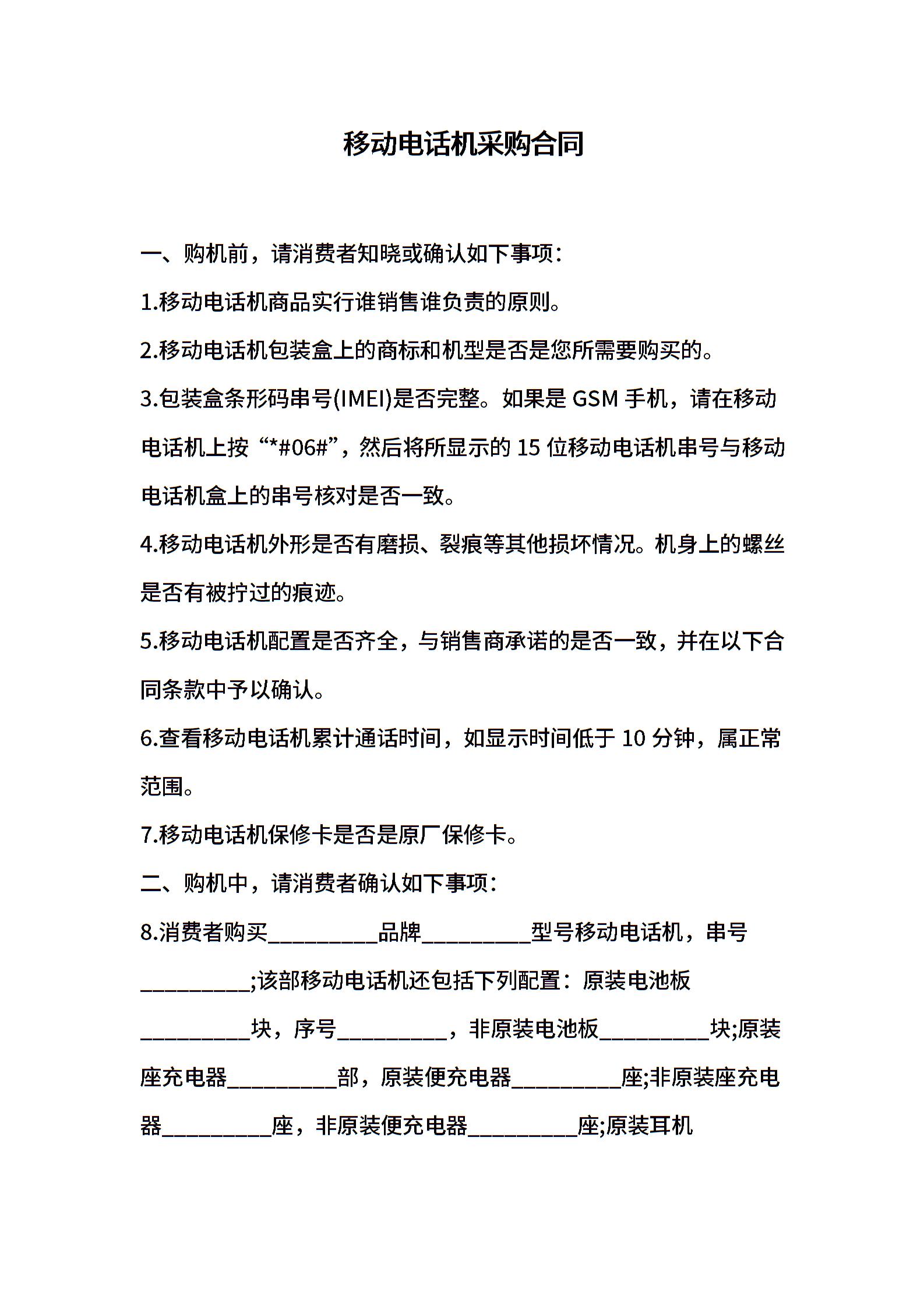 移动电话机采购合同