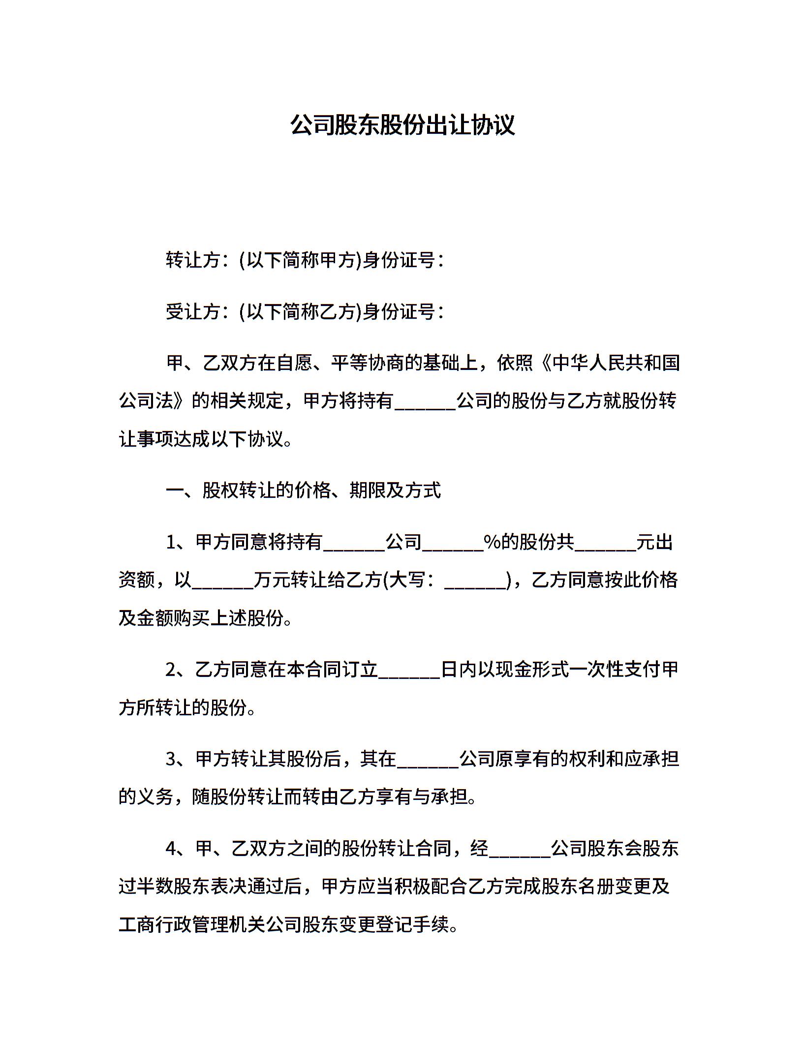 公司股东股份出让协议(1)