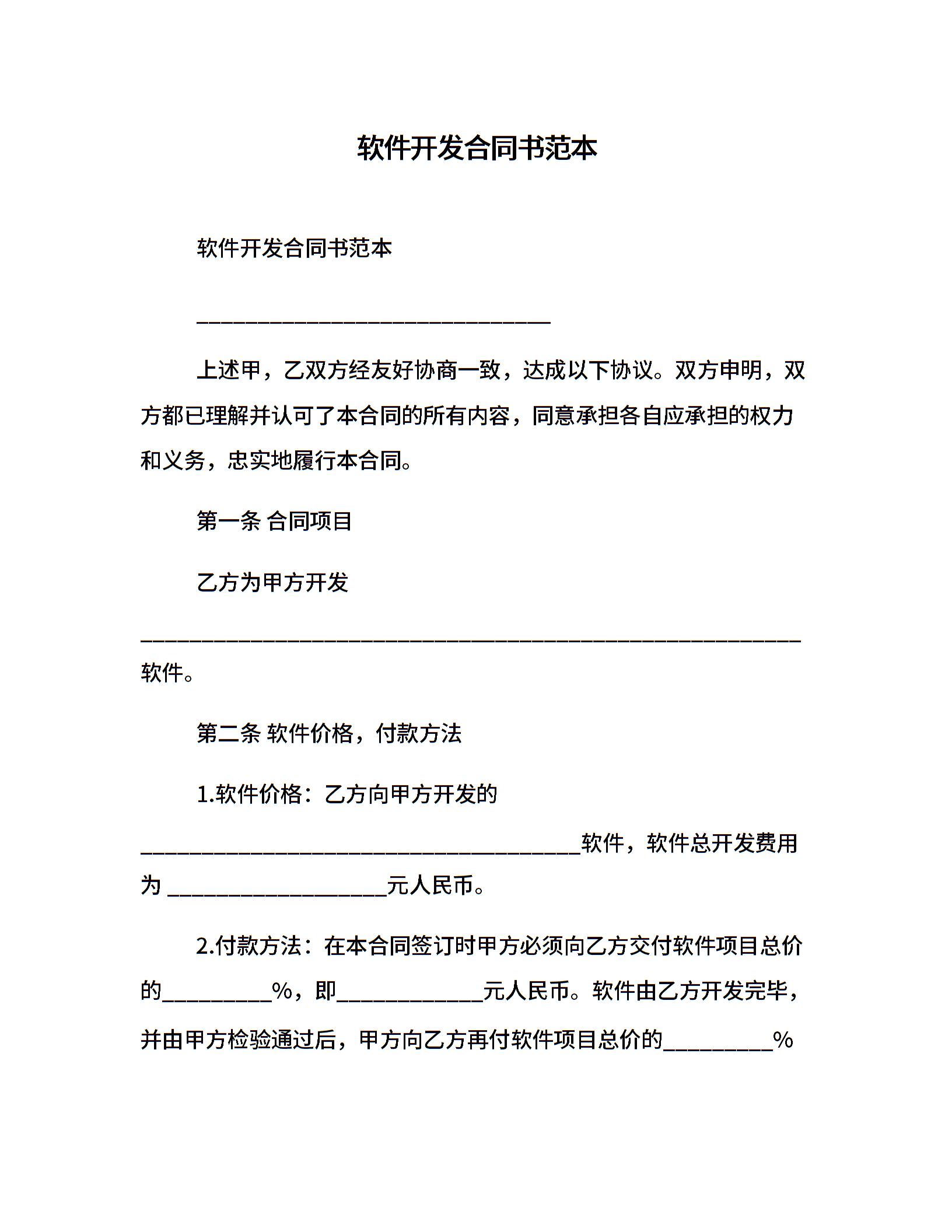 软件开发合同书范本