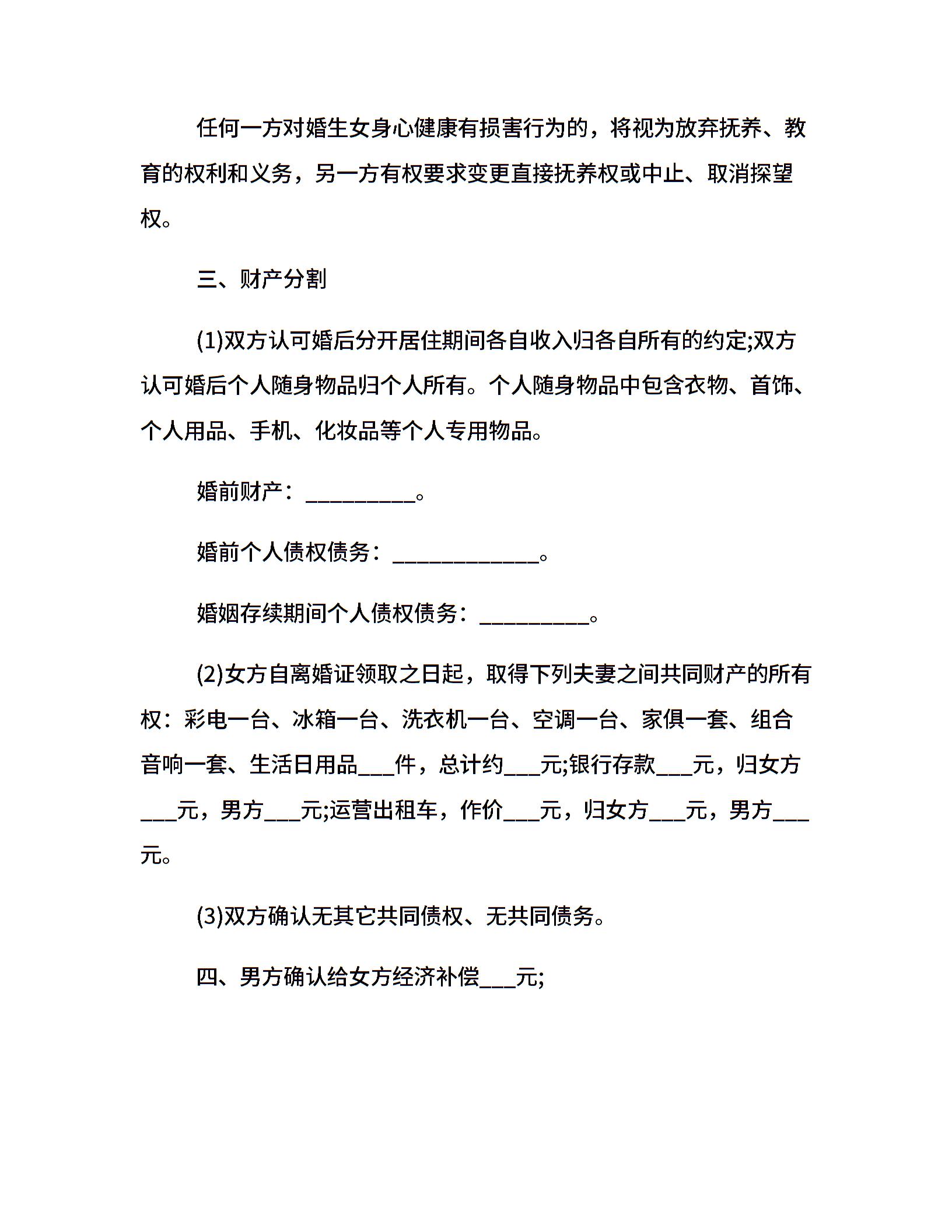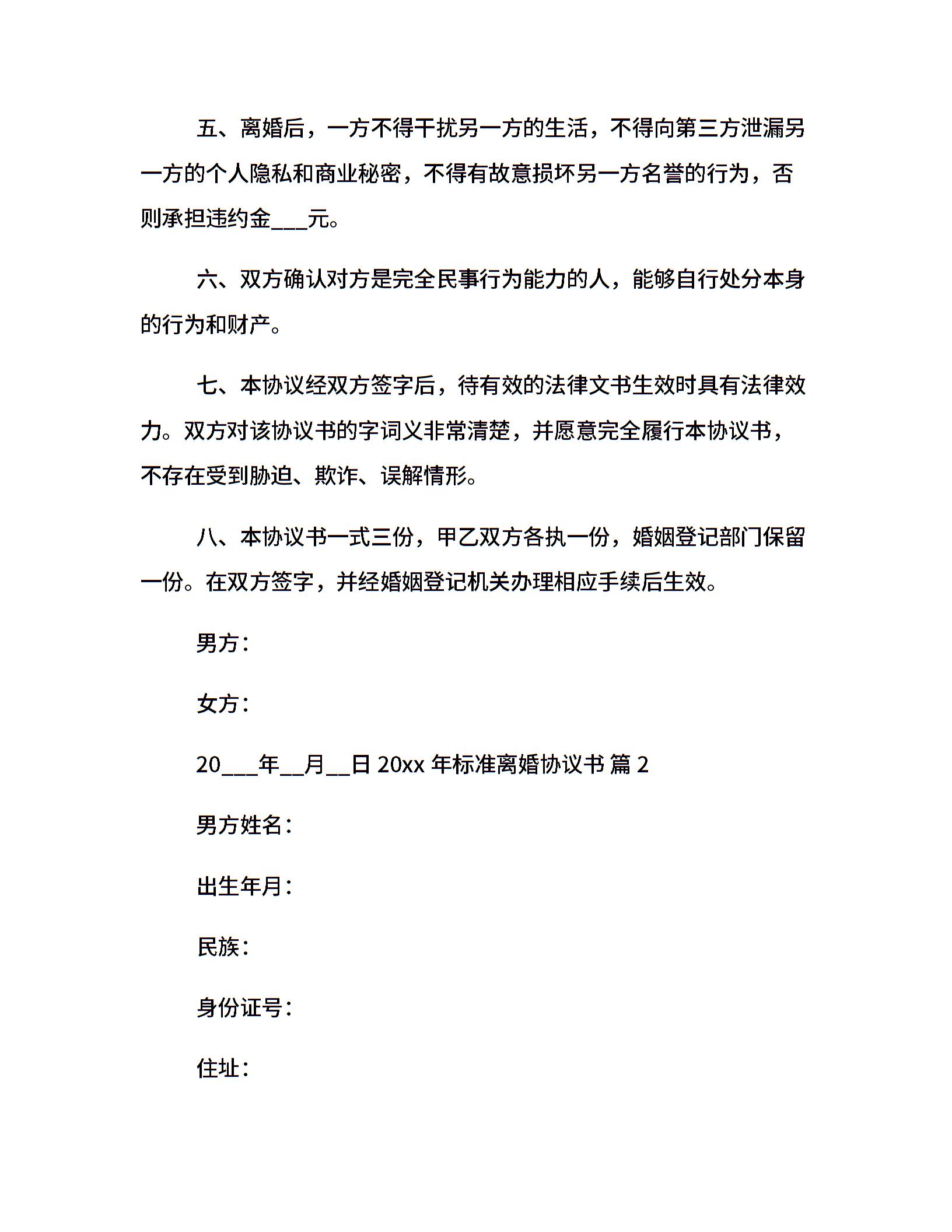 20xx年标准离婚协议书