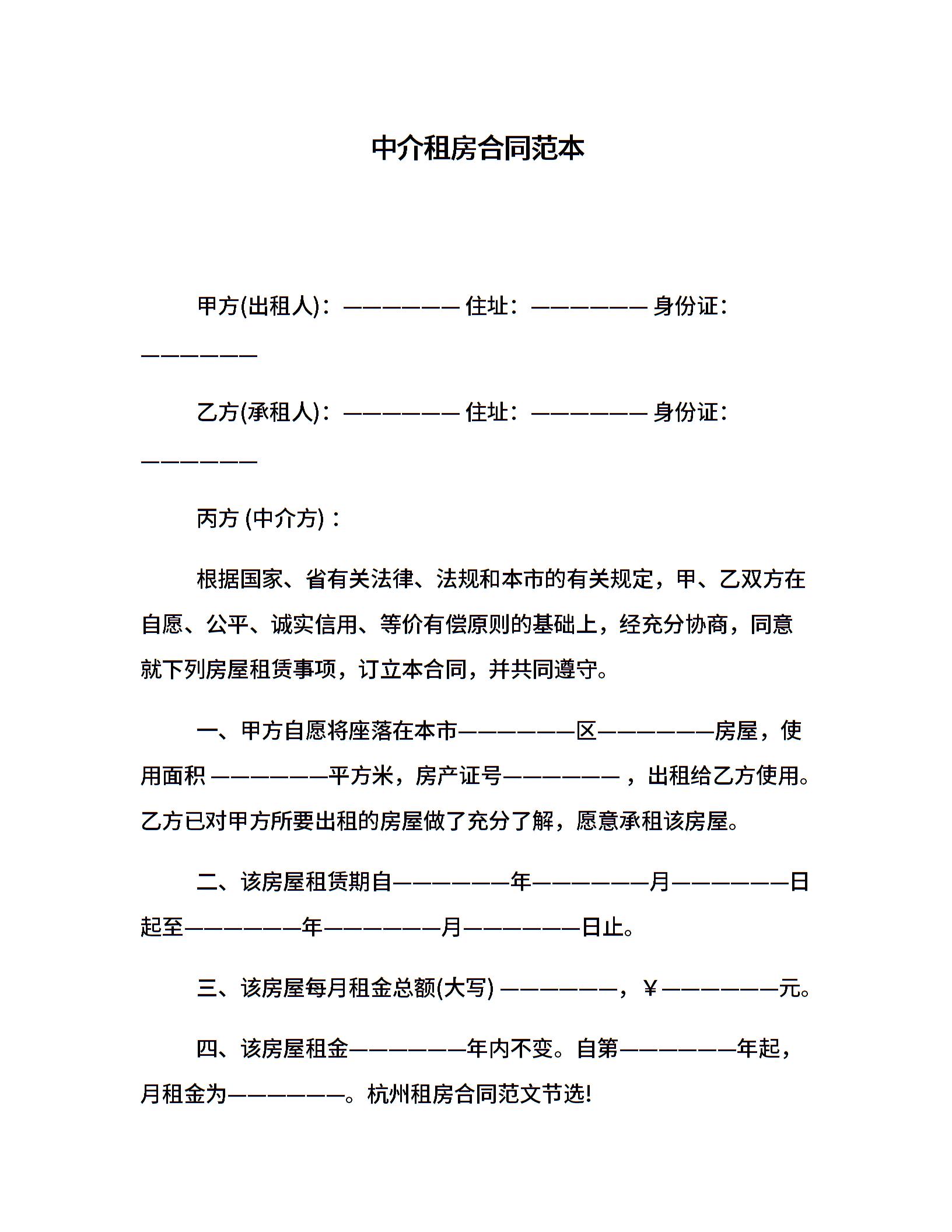 中介租房合同范本