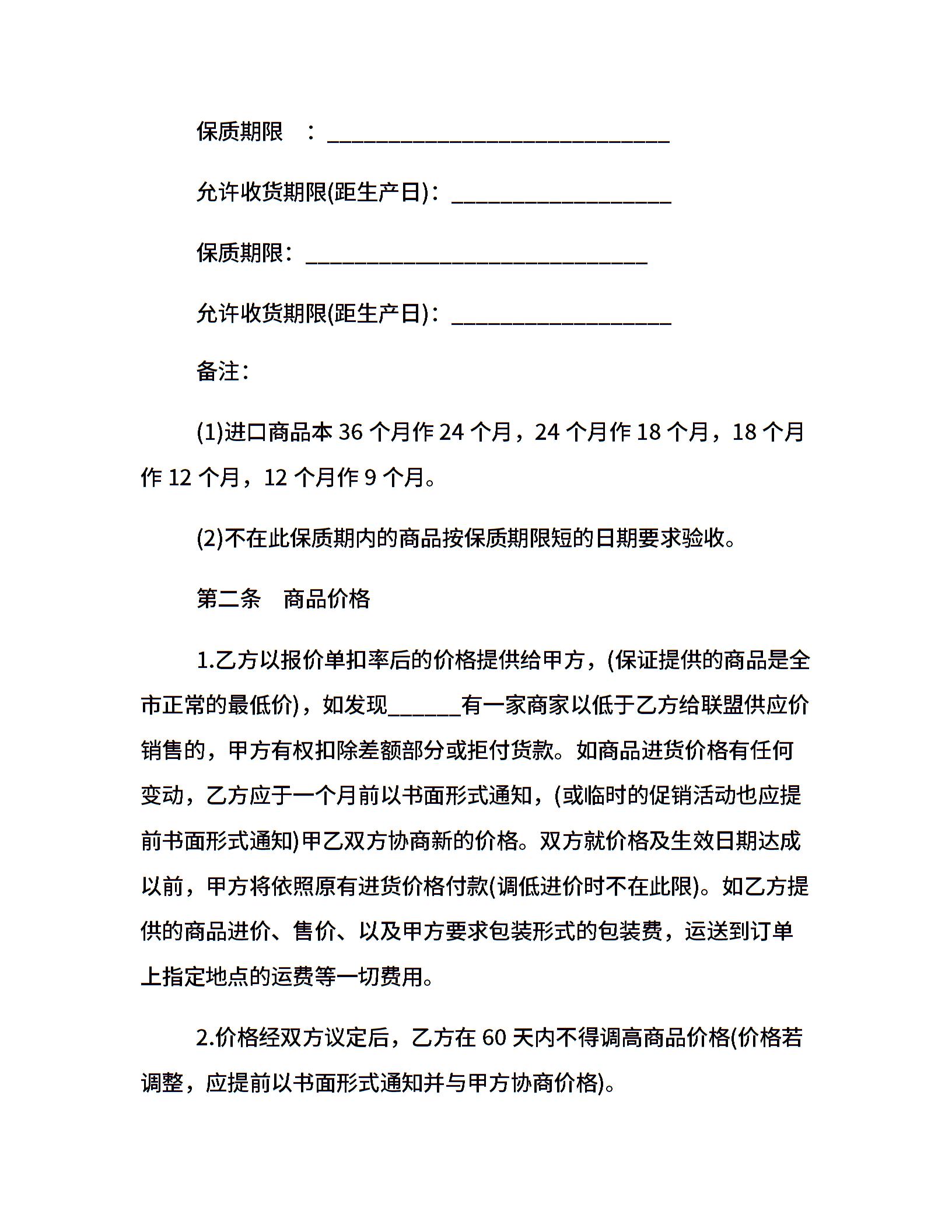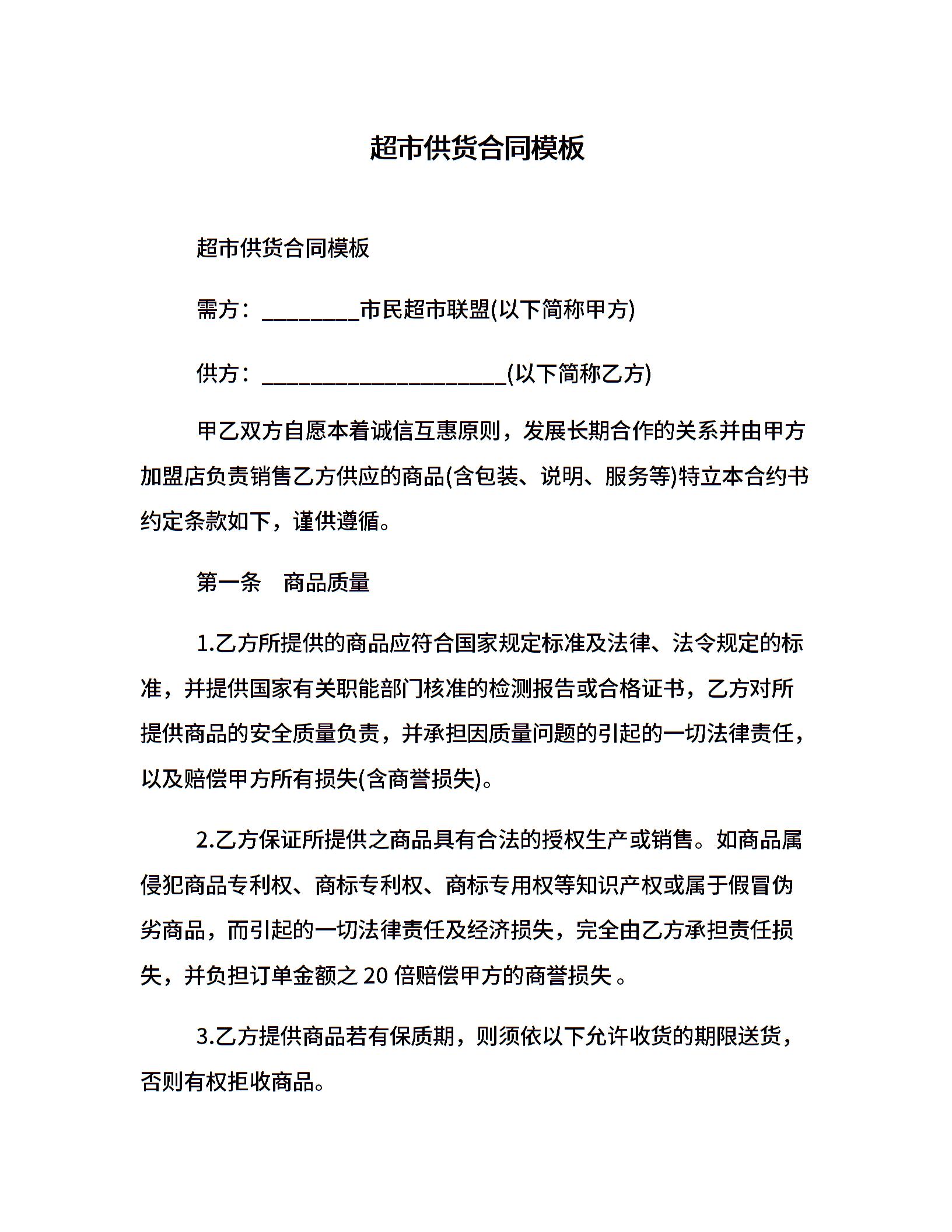 超市供货合同模板