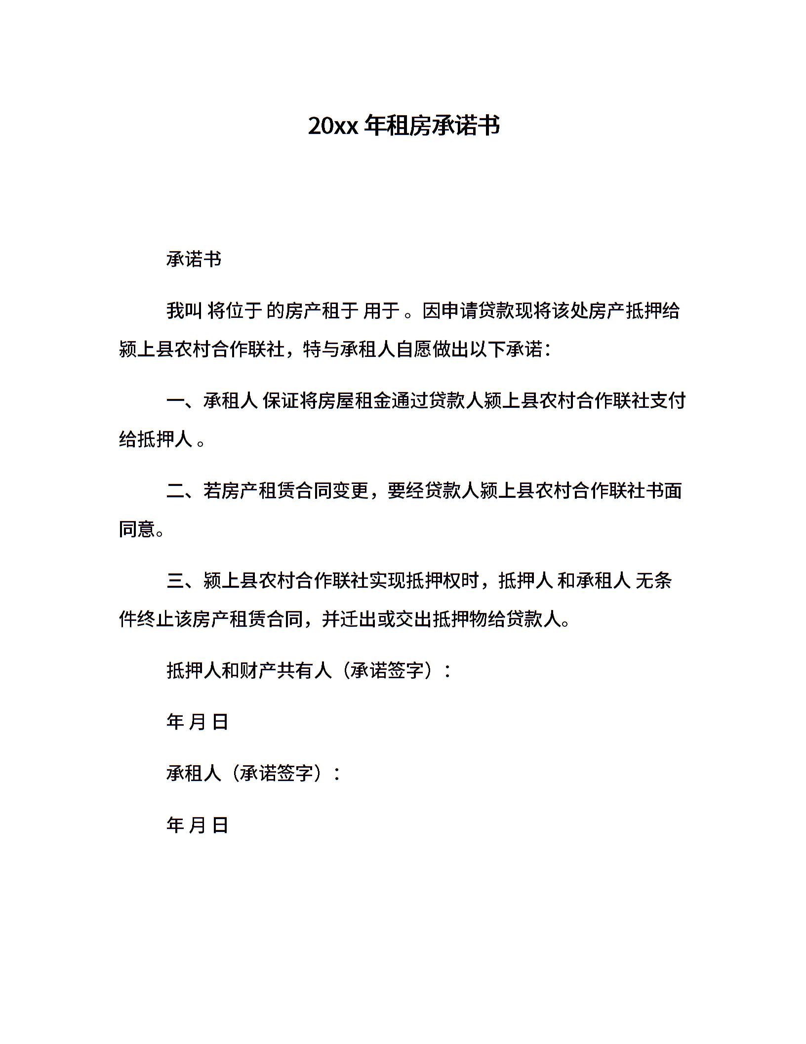 20xx年租房承诺书