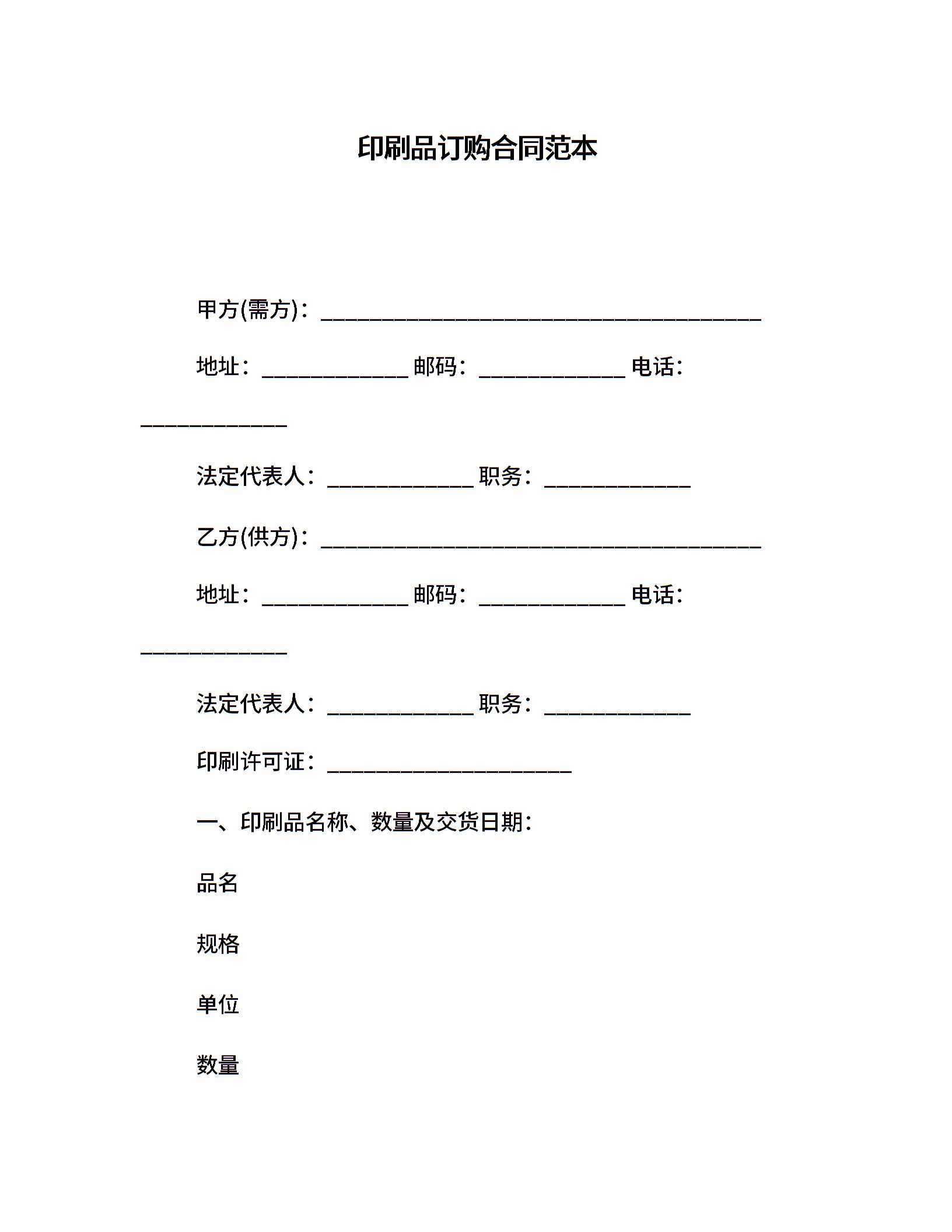 印刷品订购合同范本