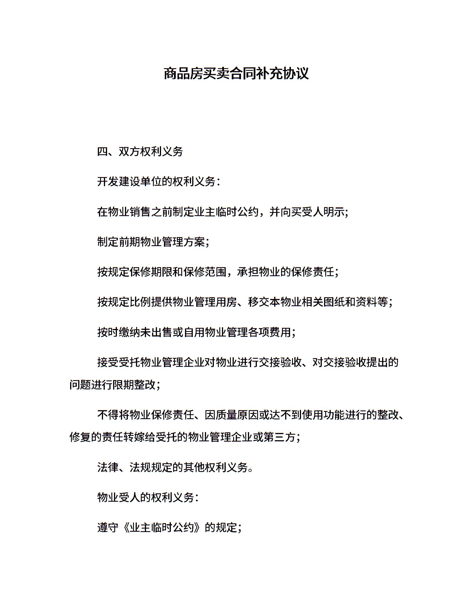 商品房买卖合同补充协议