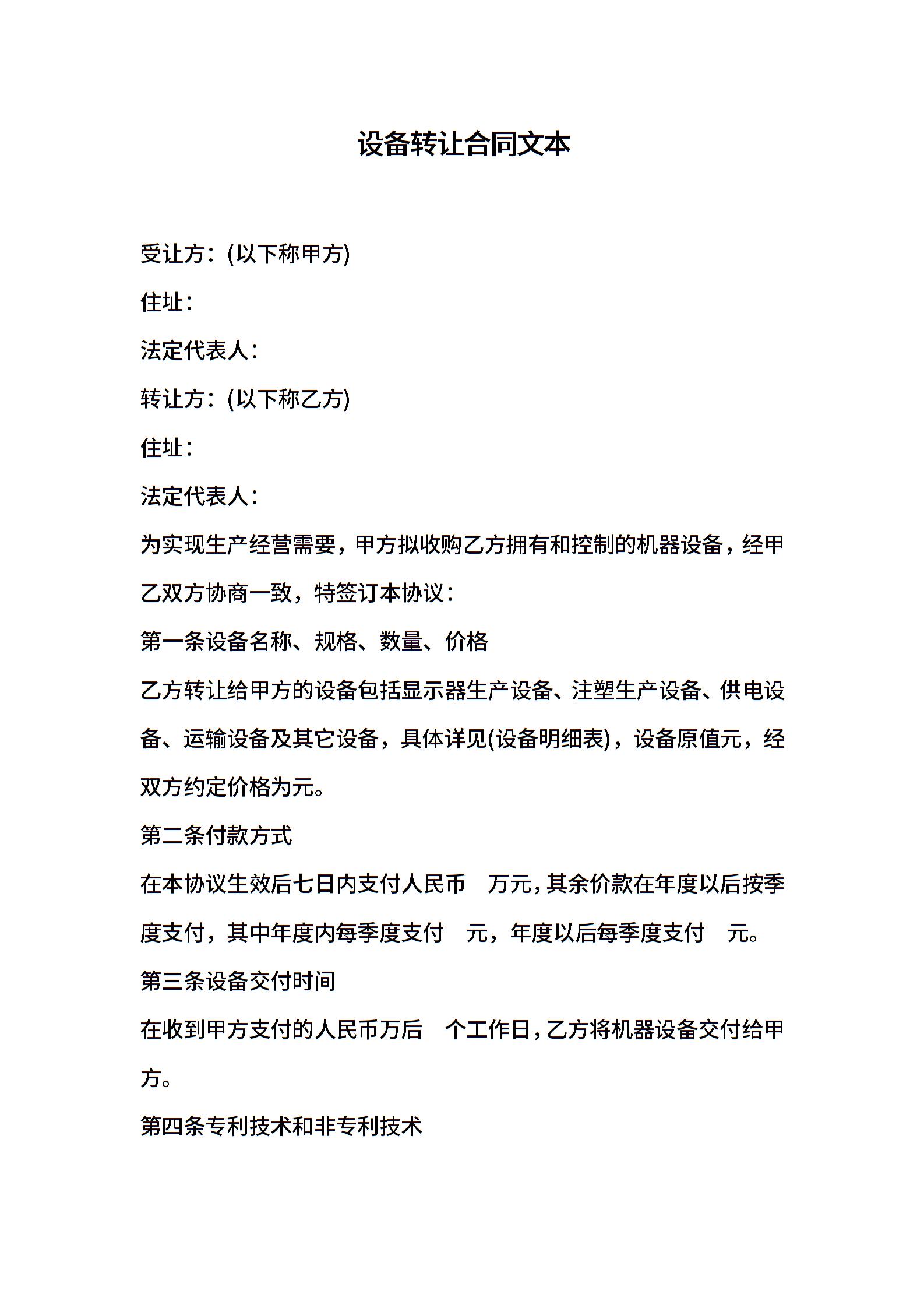 当前位置:量子办公 > 合同模板 > 转让合同 >