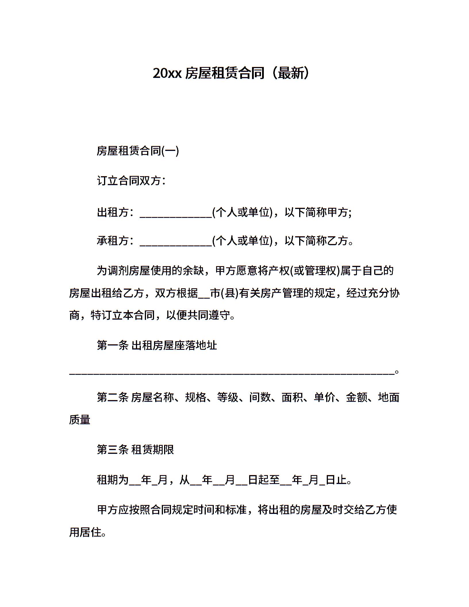 20xx房屋租赁合同(最新)