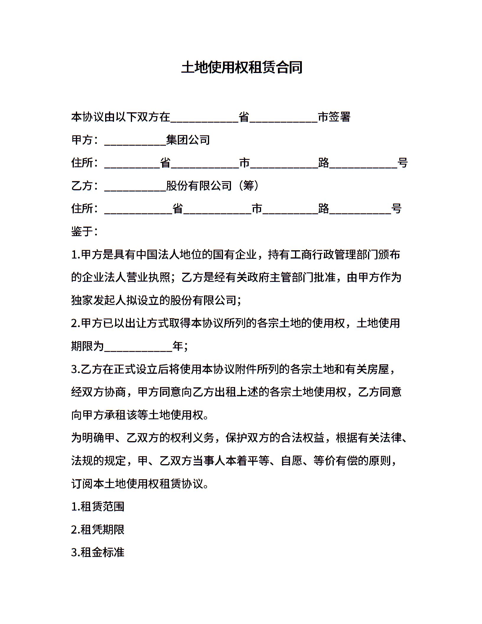 土地使用权租赁合同