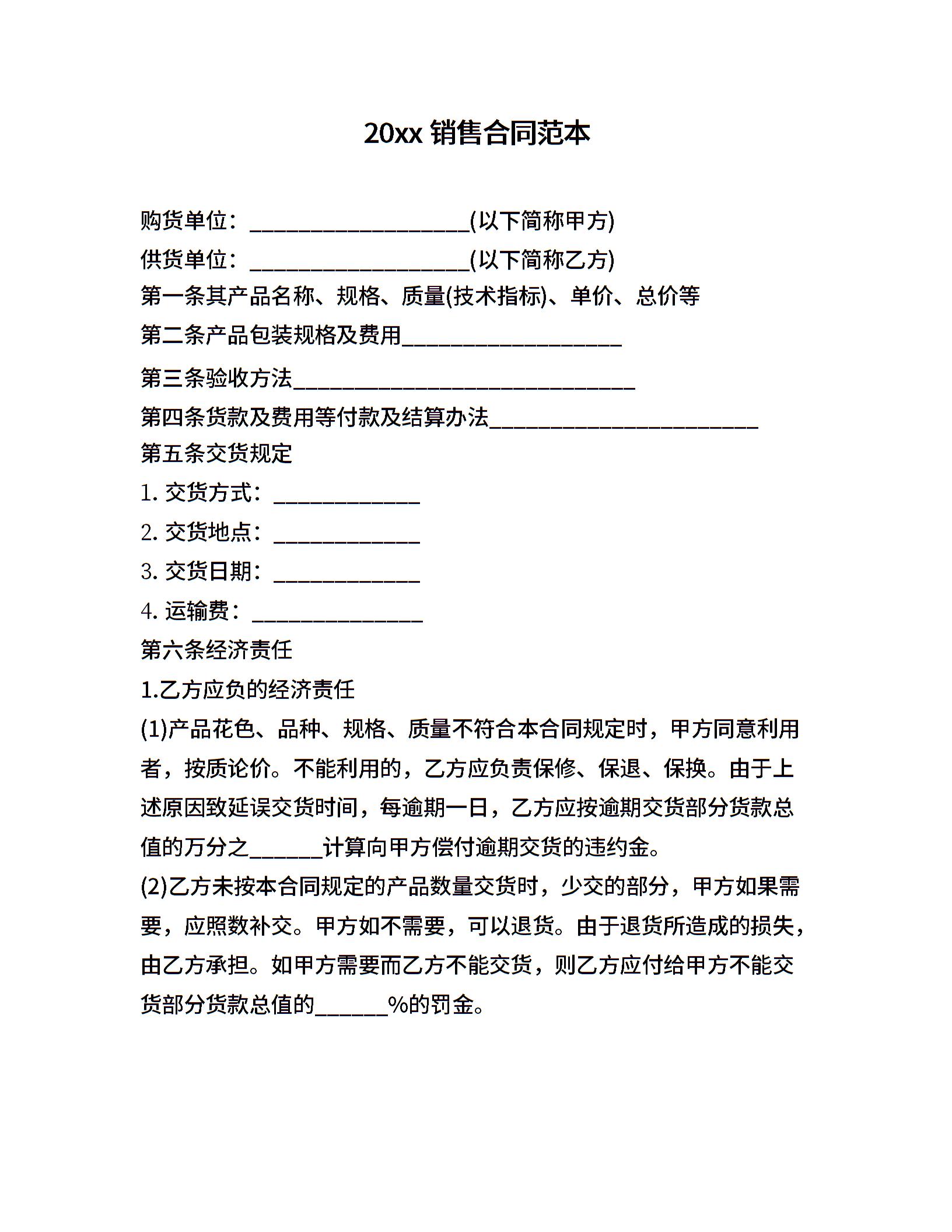 20xx销售合同范本