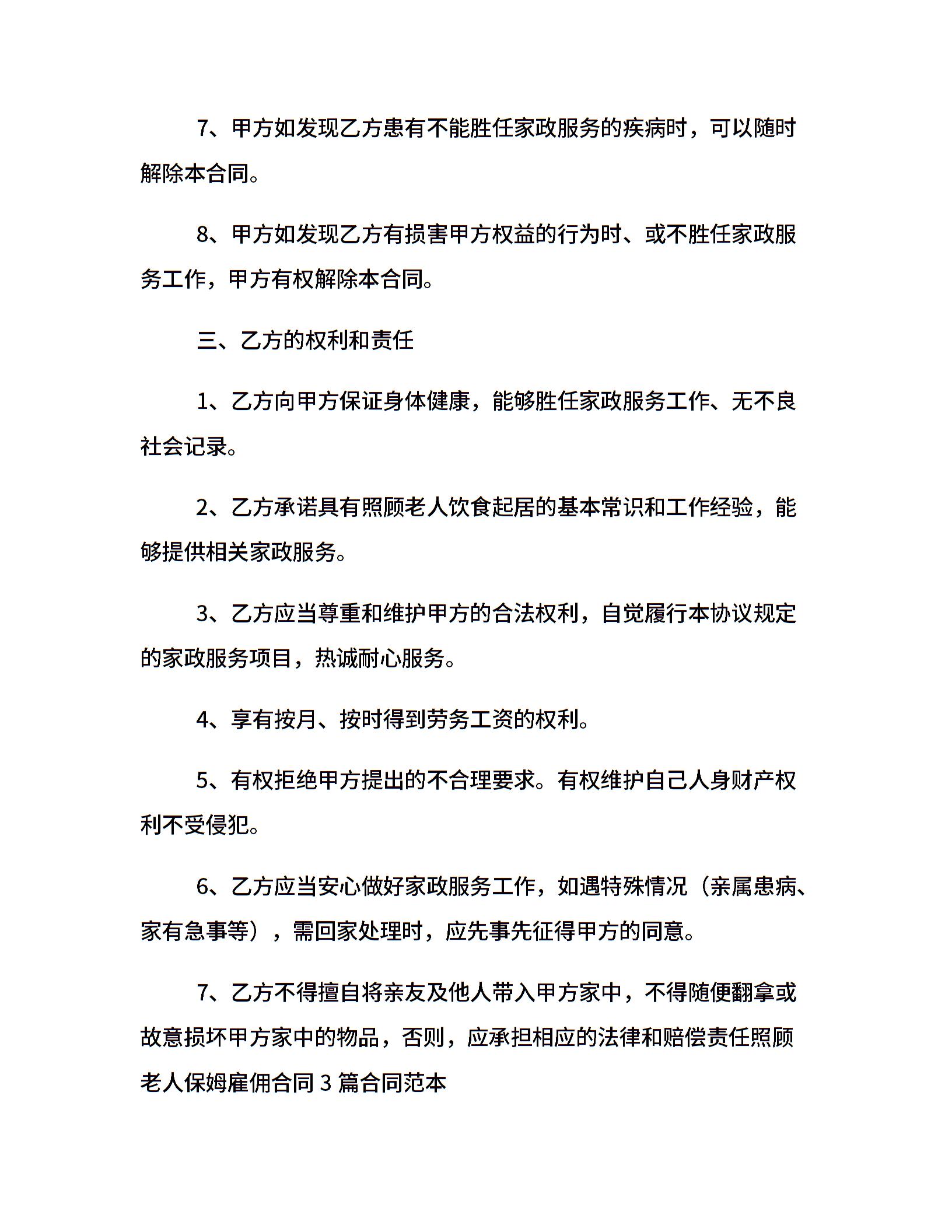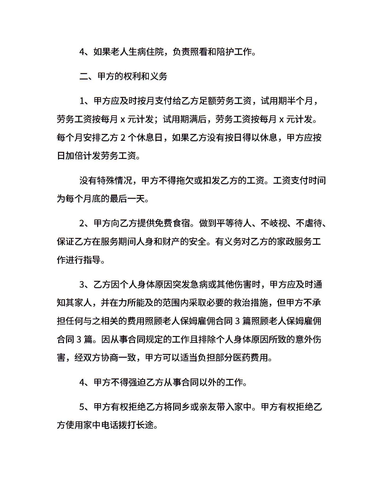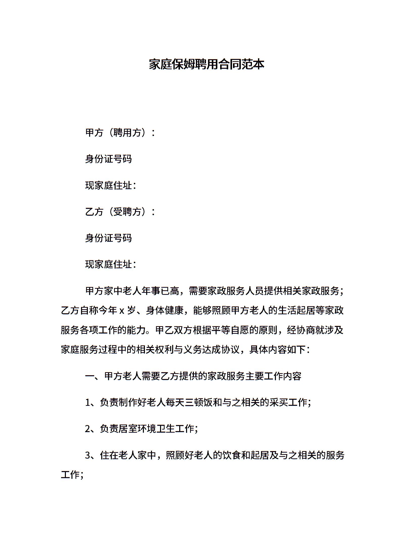 家庭保姆聘用合同范本