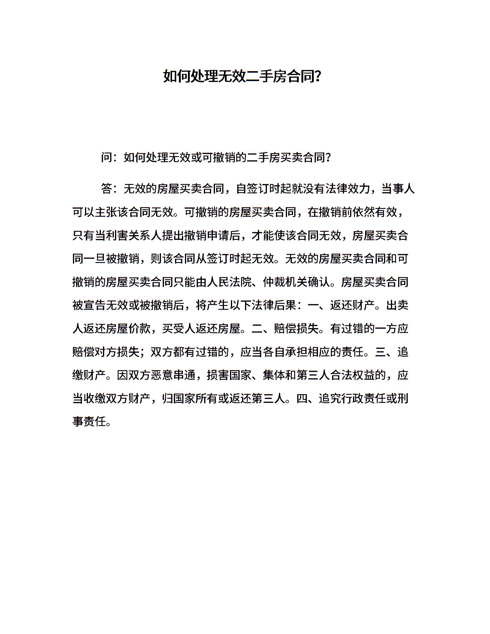 如何处理无效二手房合同?