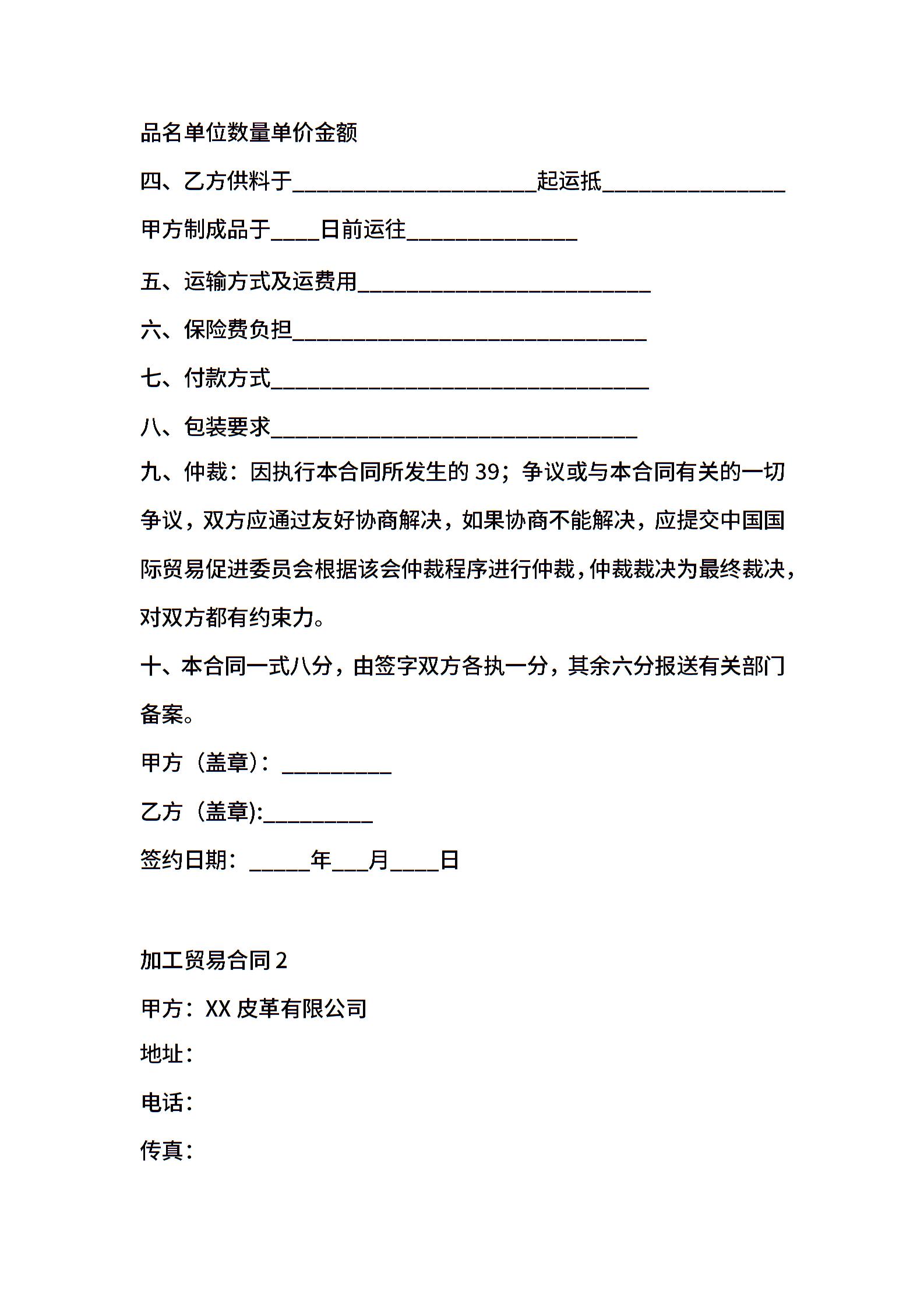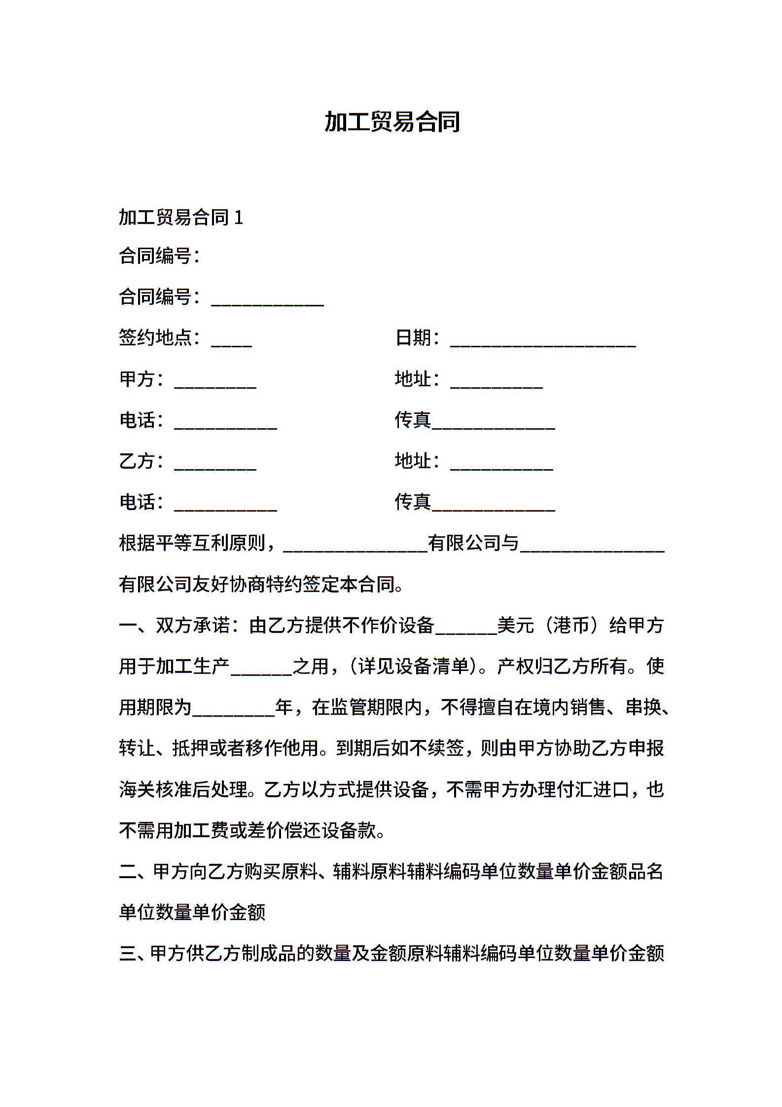 加工贸易合同