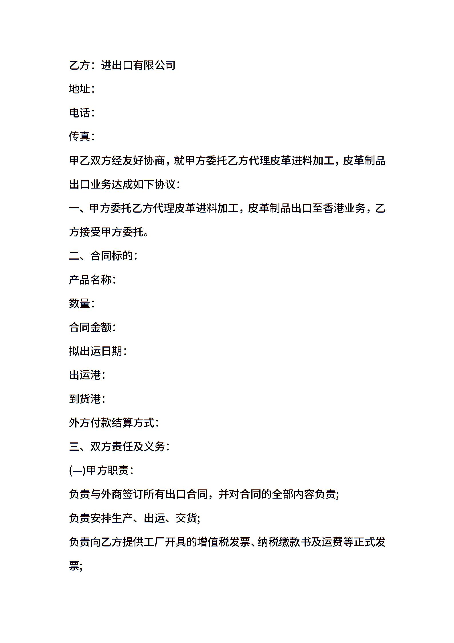 • 分类 贸易合同
