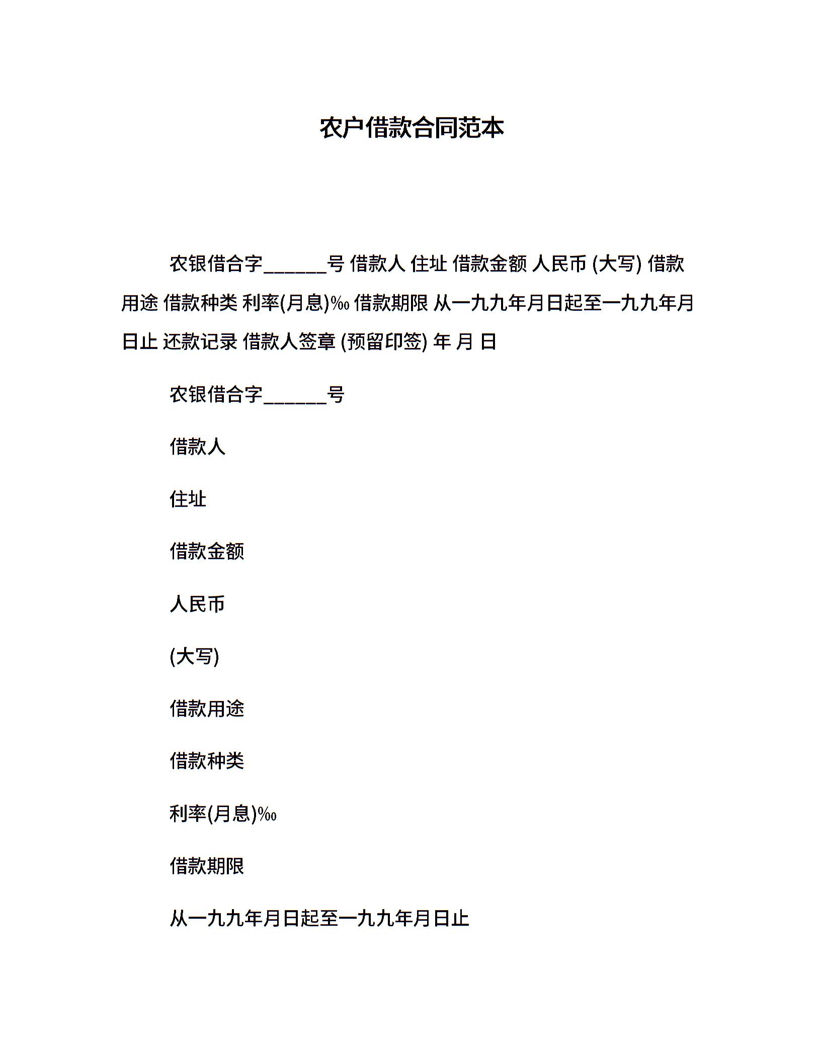 农户借款合同范本