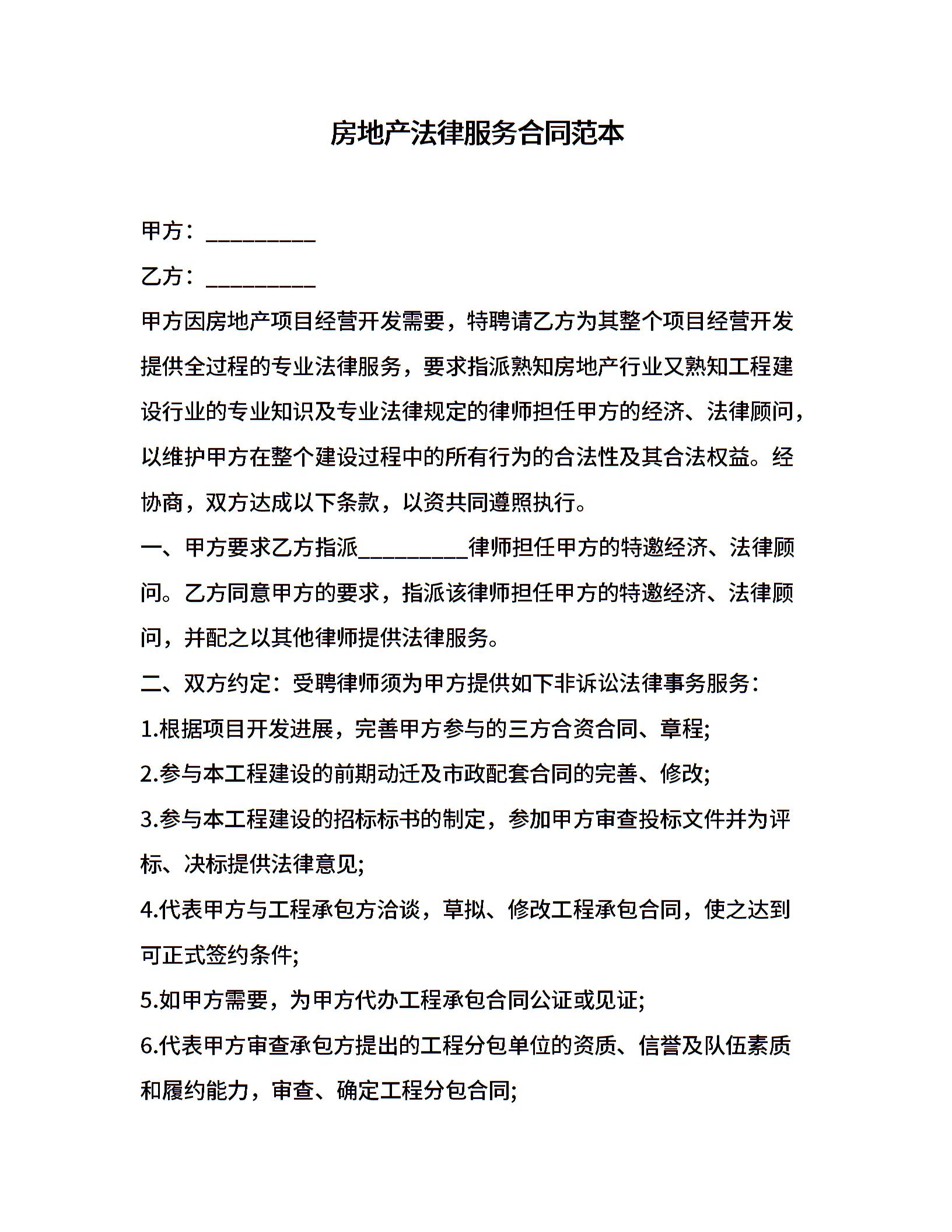 房地产法律服务合同范本