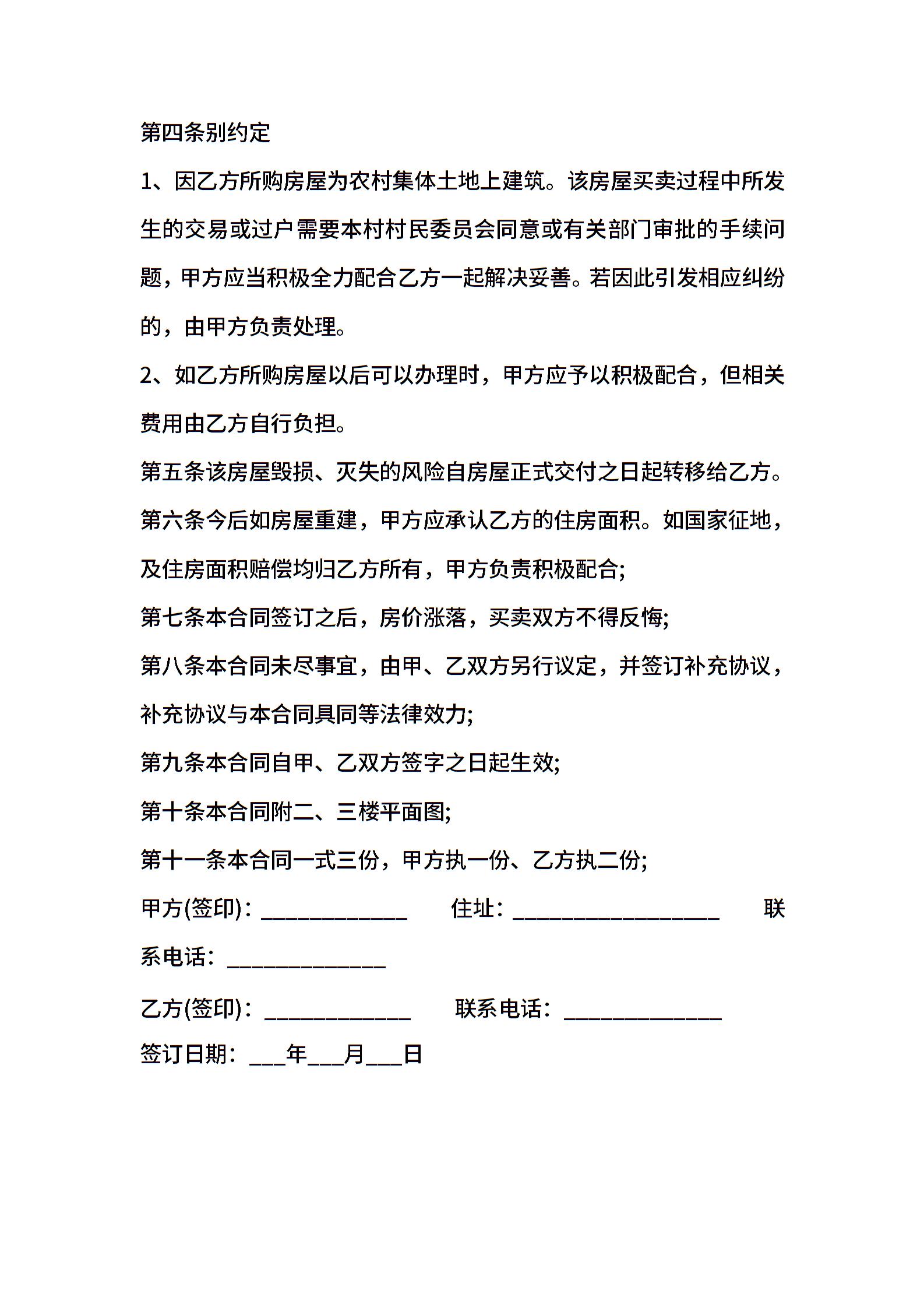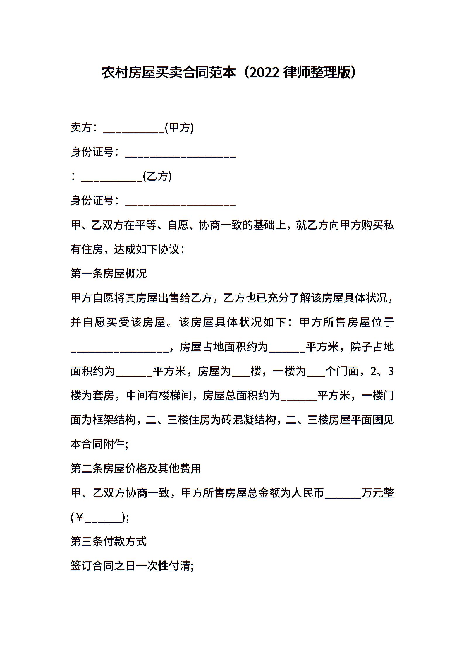 农村房屋买卖合同范本(2022律师整理版)