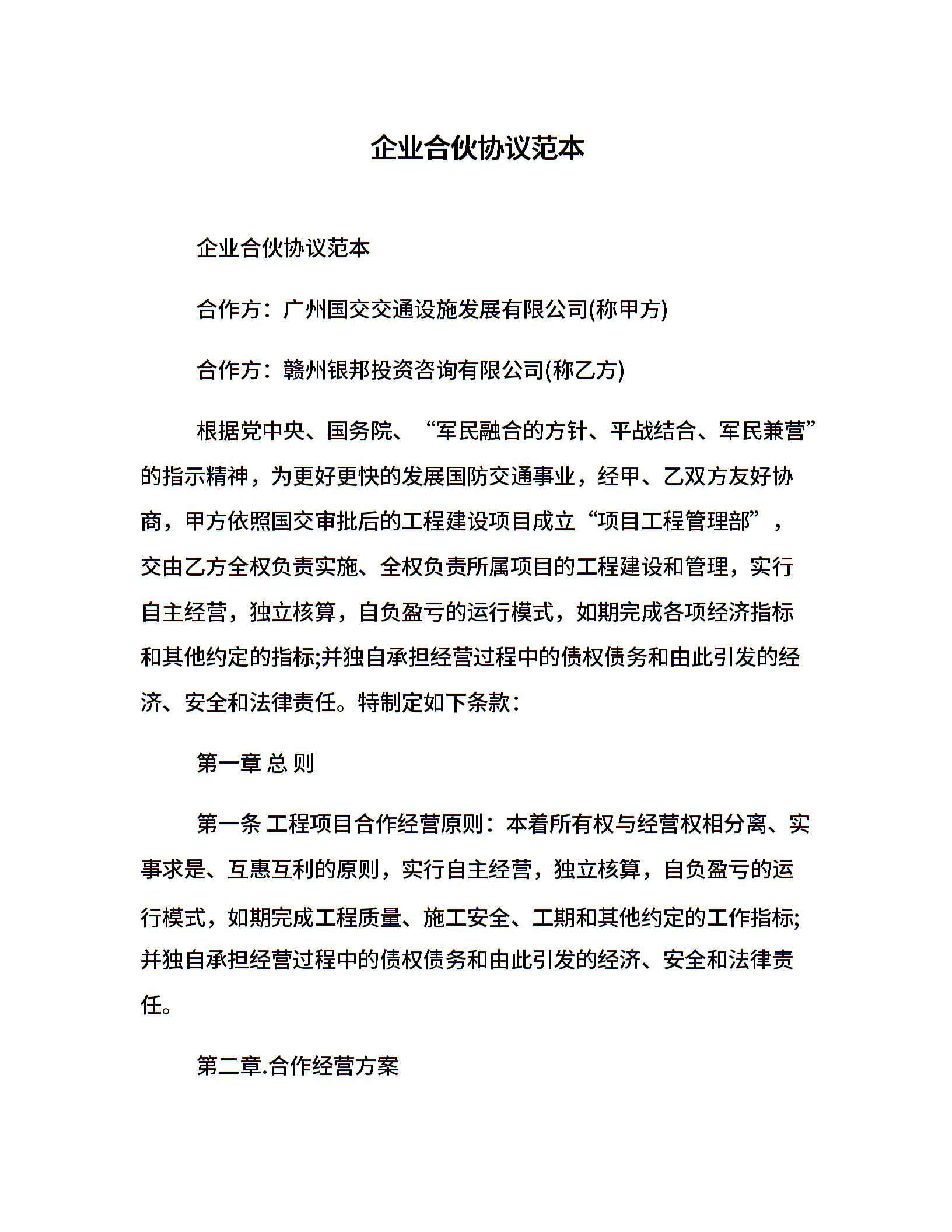 企业合伙协议范本