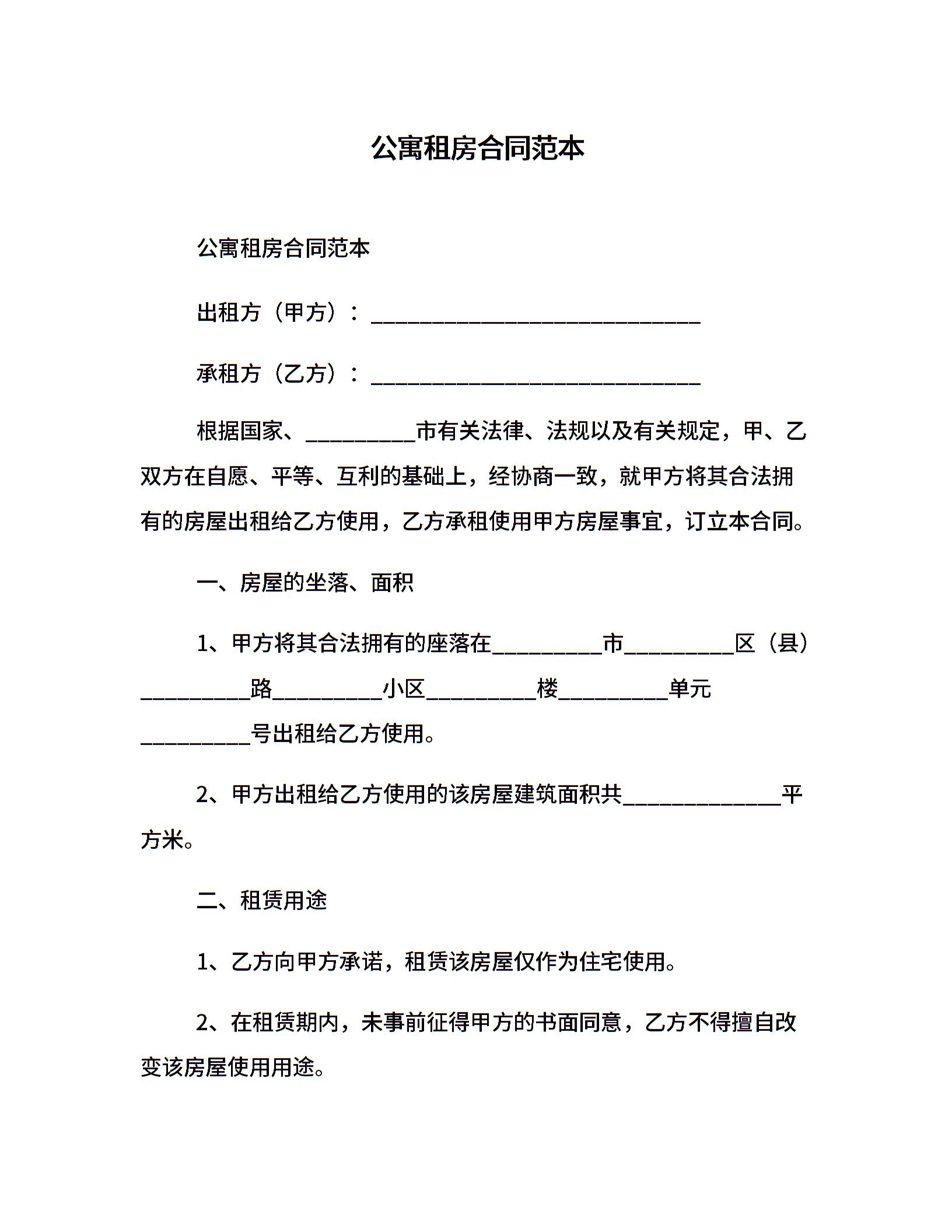 公寓租房合同范本