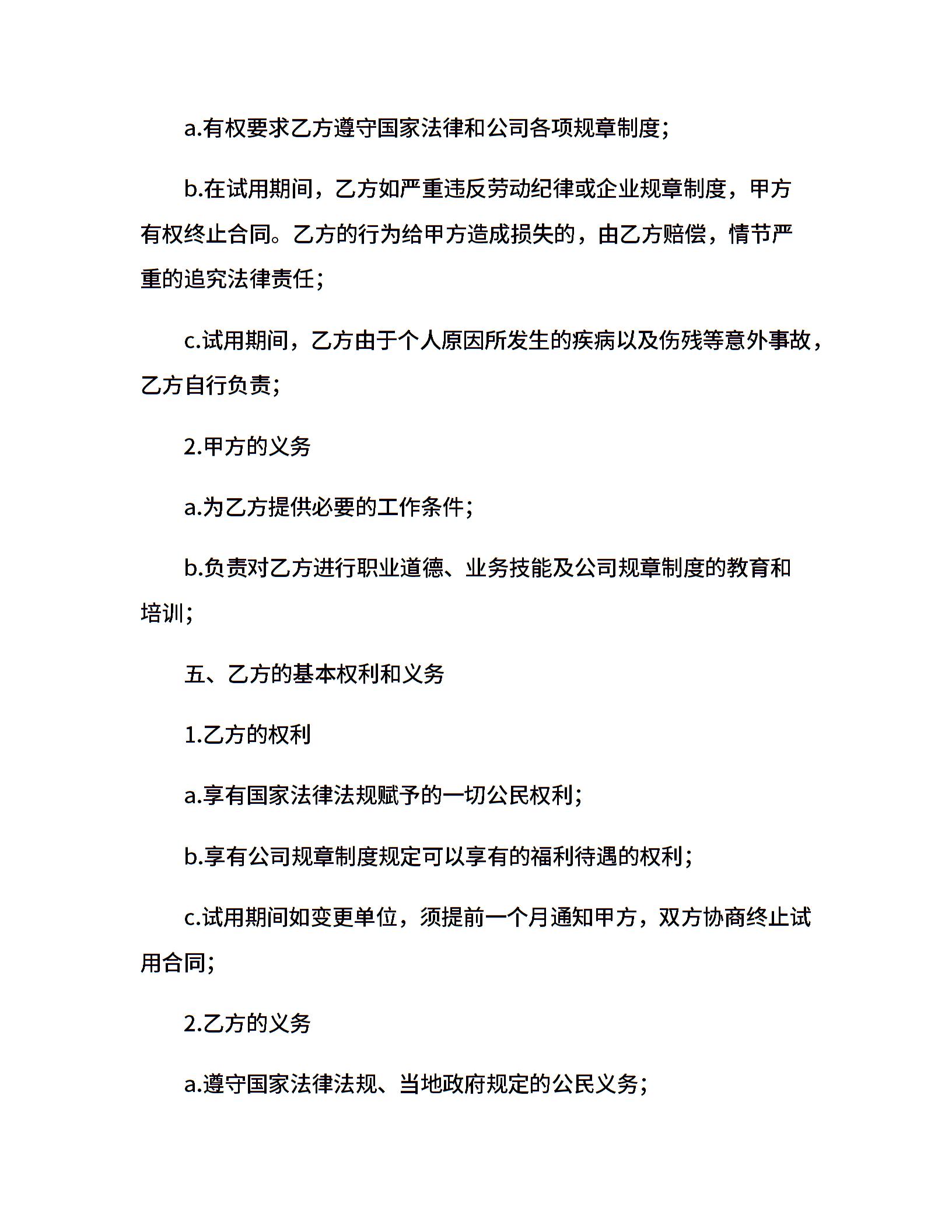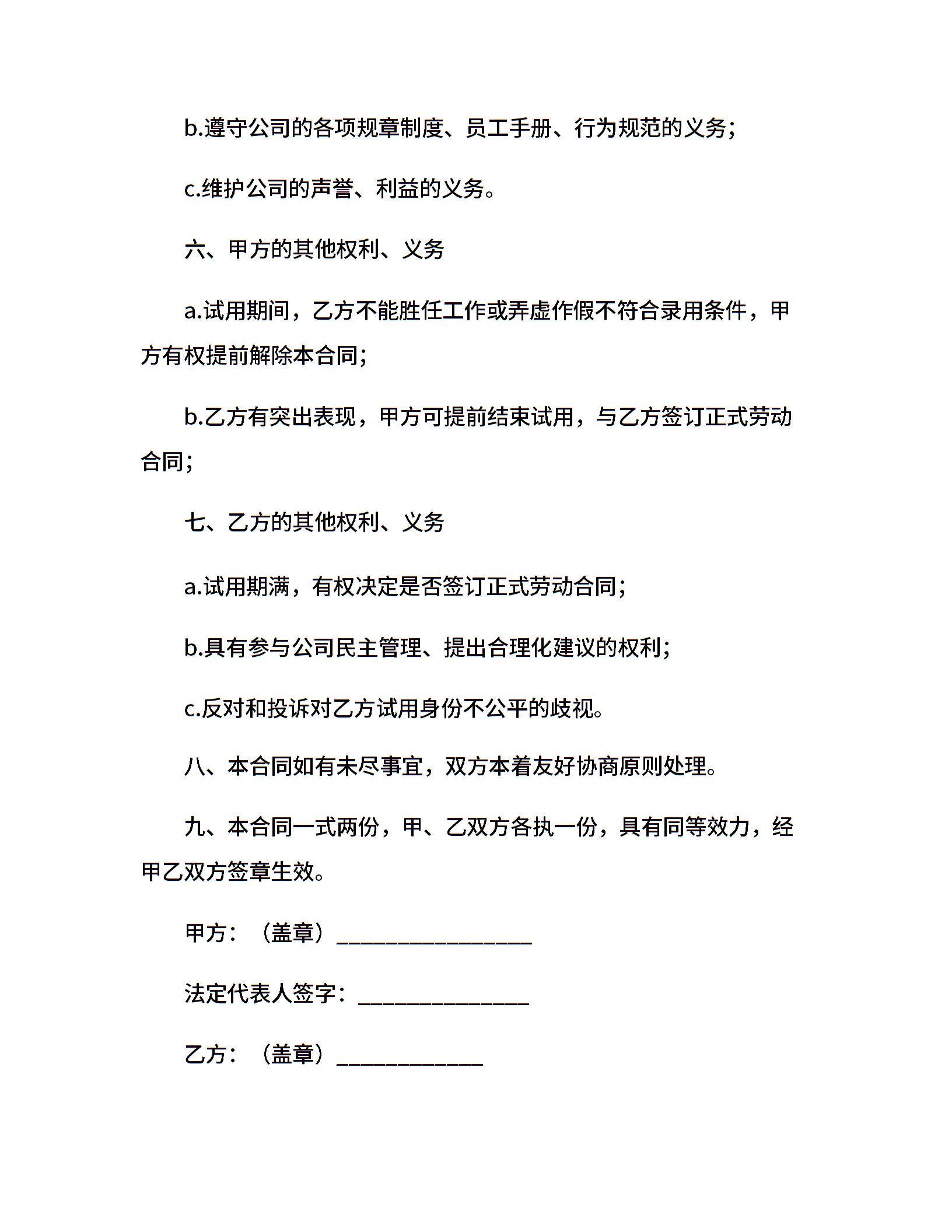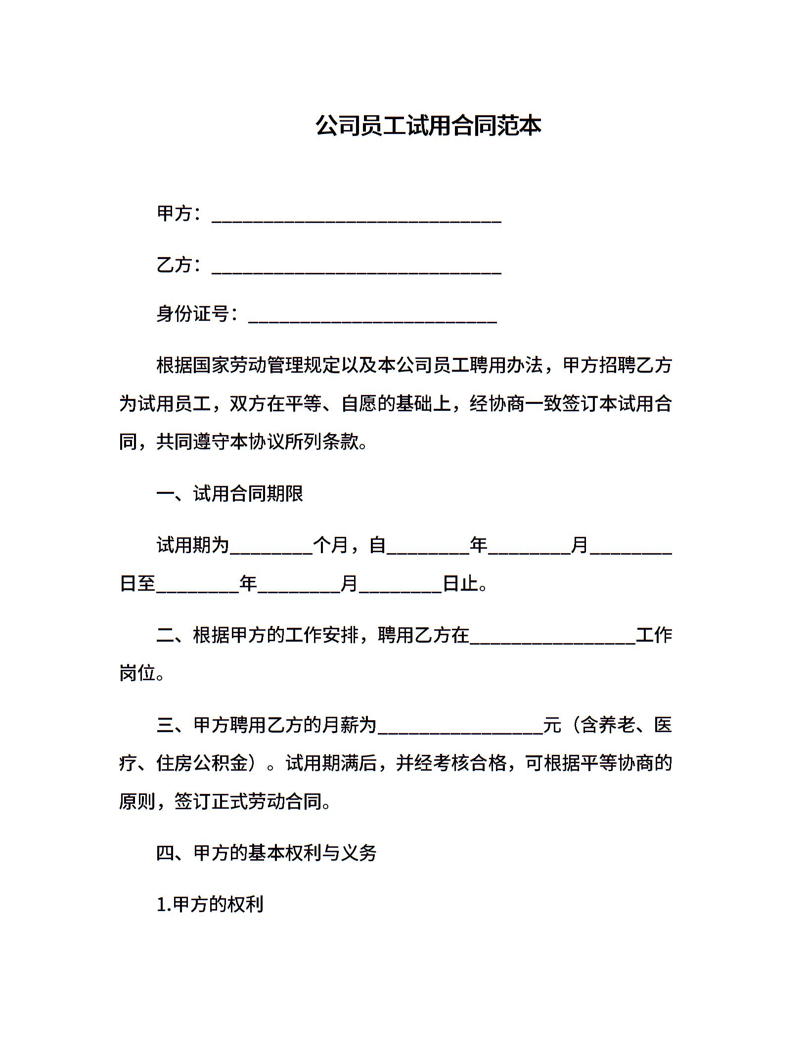 公司员工试用合同范本(1)