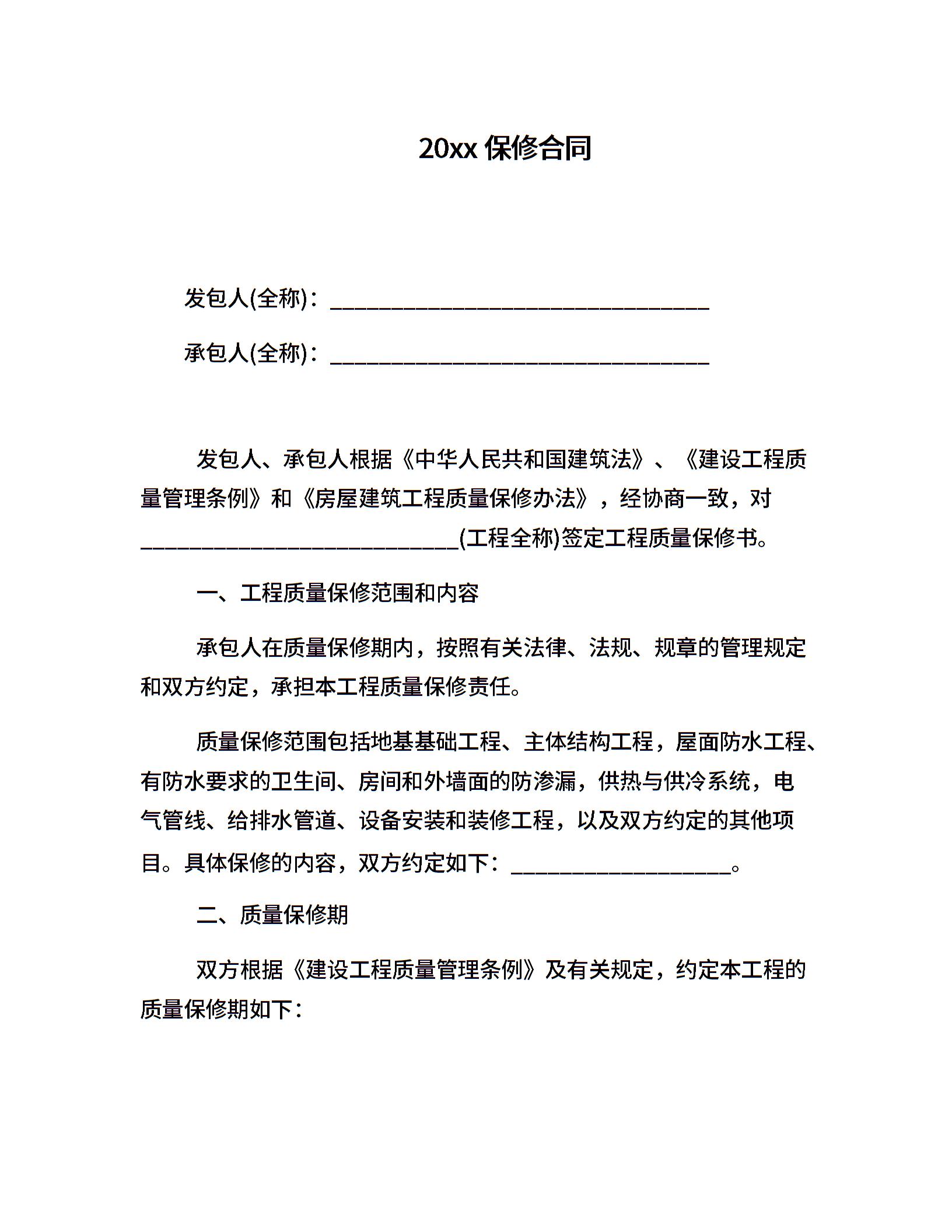 20xx保修合同
