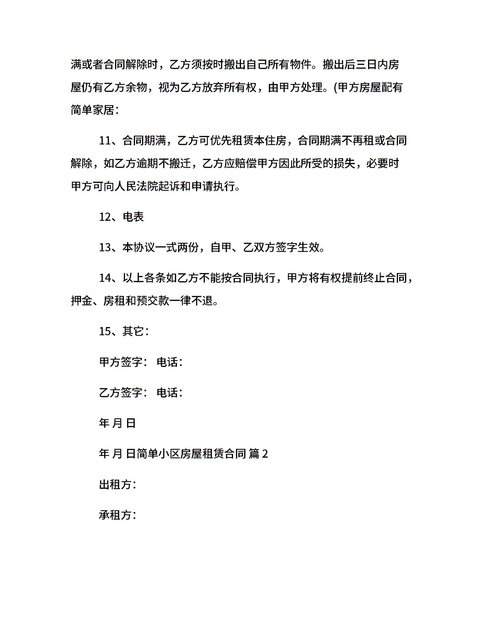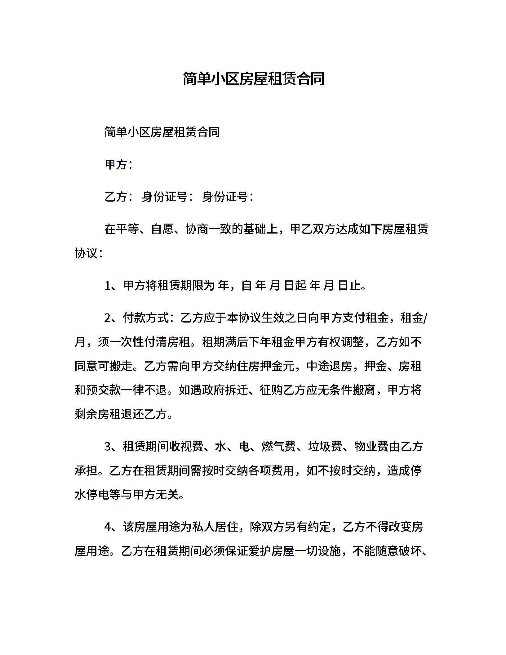 简单小区房屋租赁合同