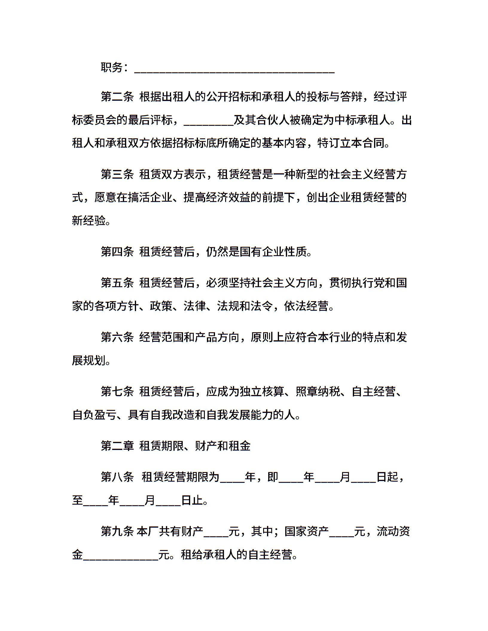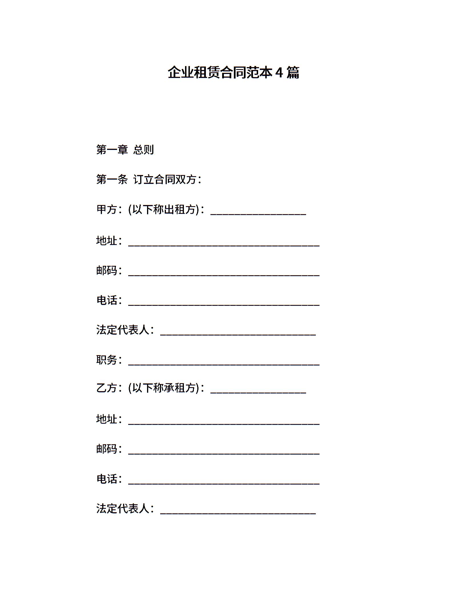 企业租赁合同范本4篇