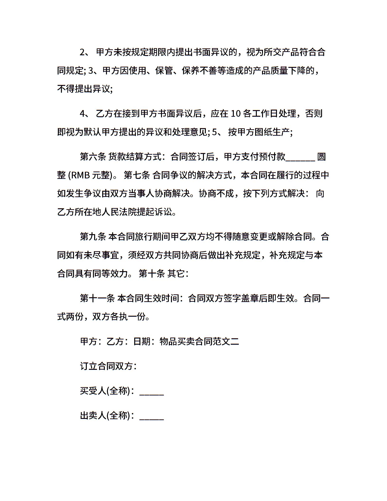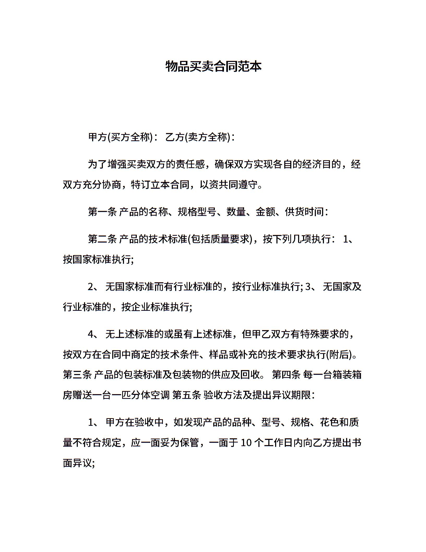 物品买卖合同范本