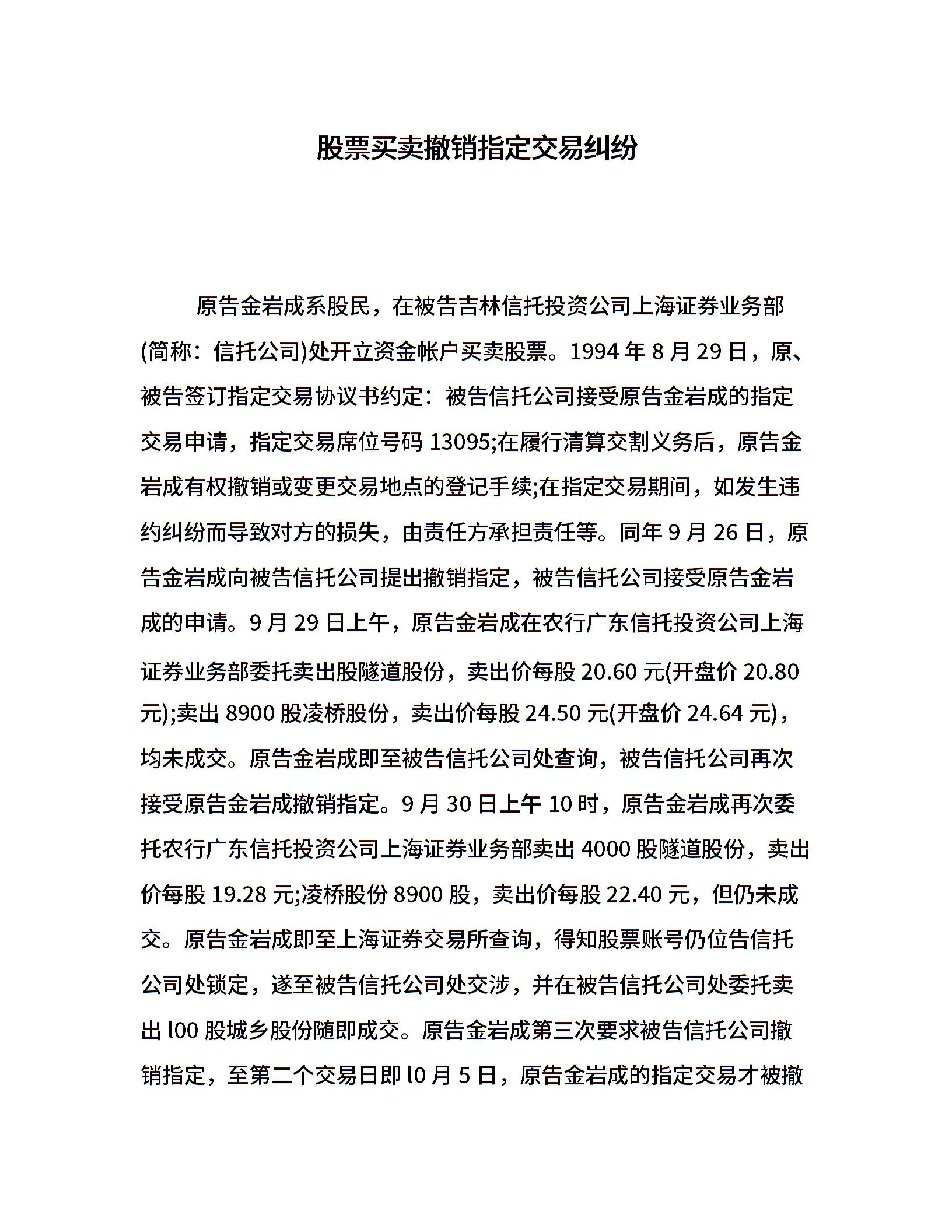 股票买卖撤销指定交易纠纷