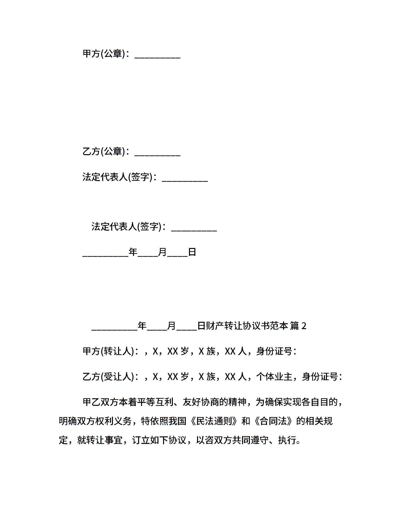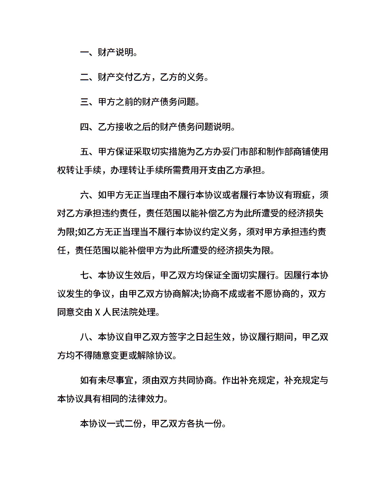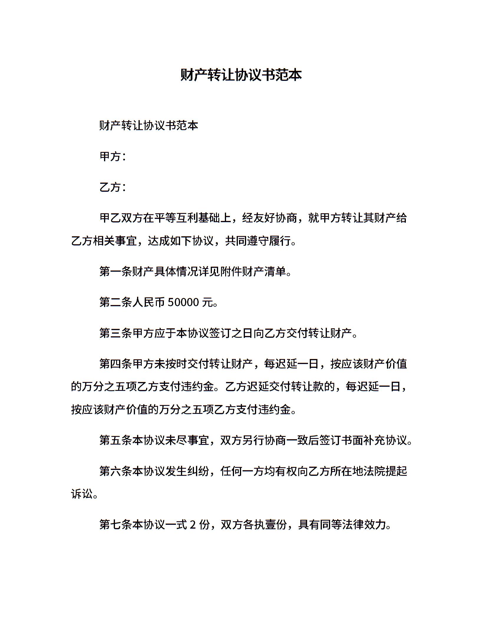 财产转让协议书范本
