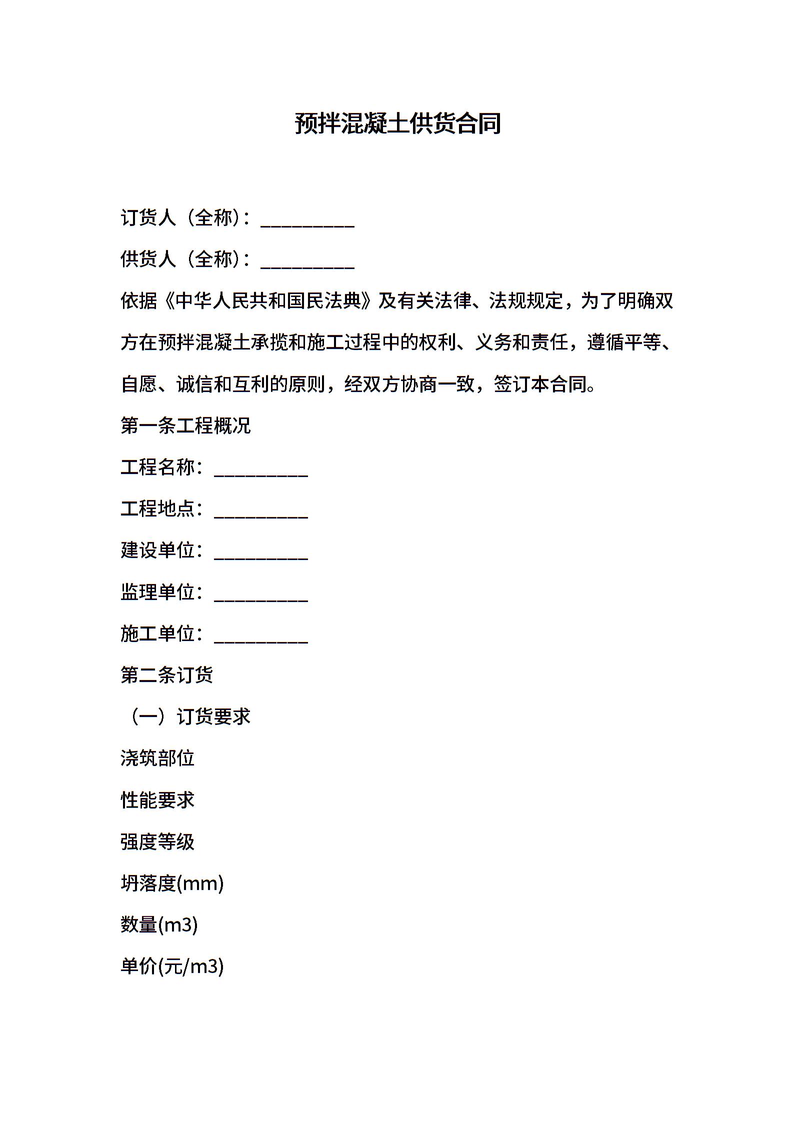 预拌混凝土供货合同