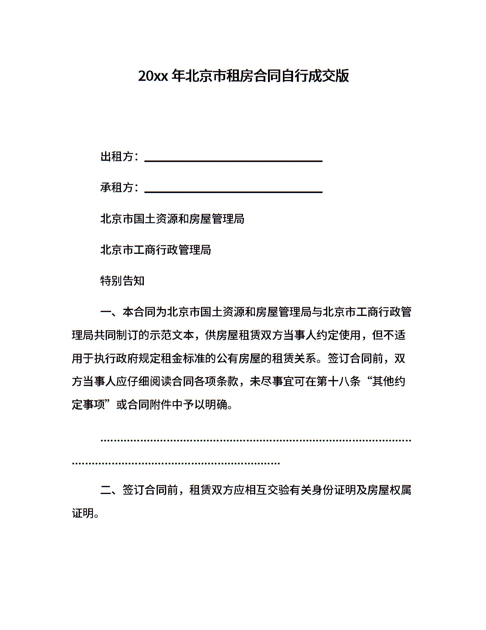20xx年北京市租房合同自行成交版