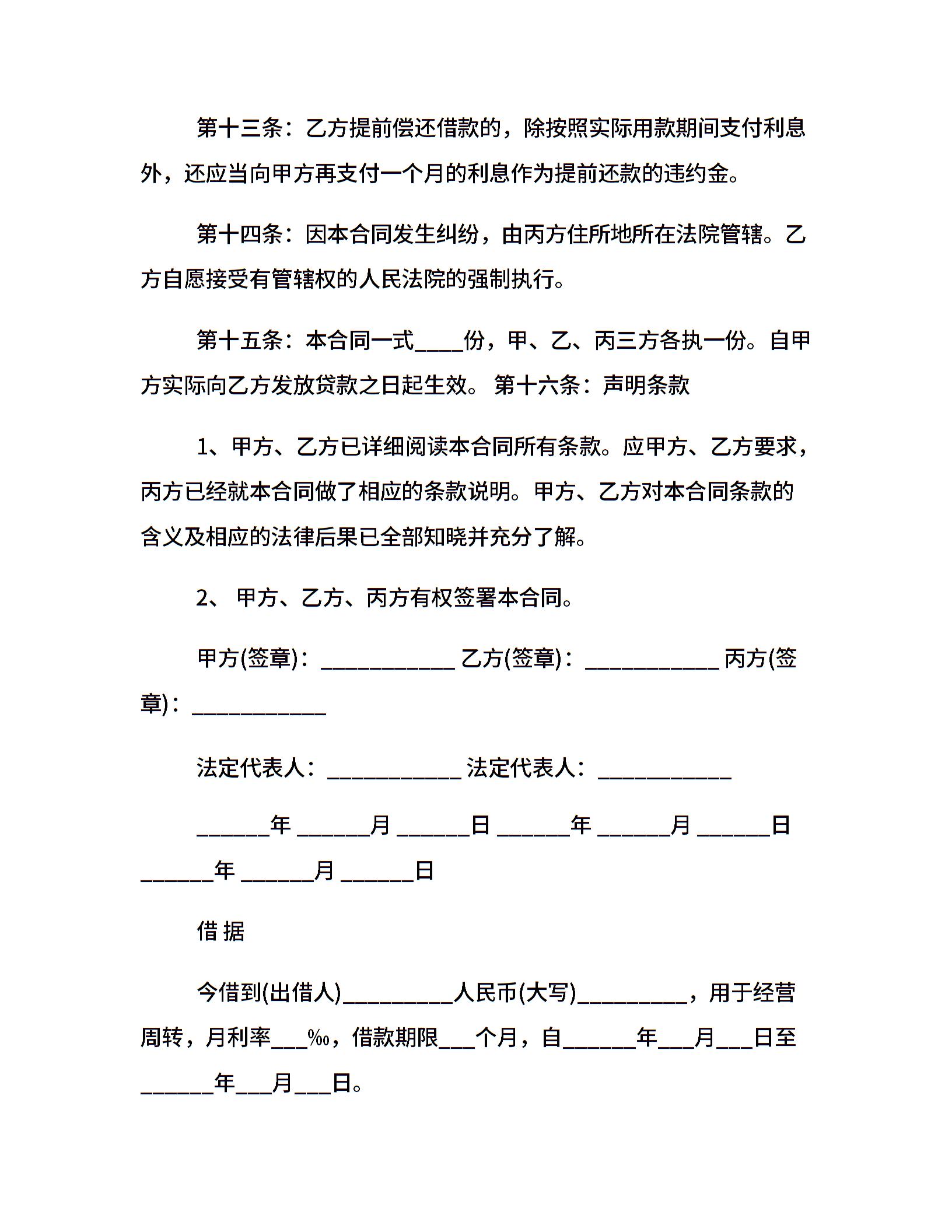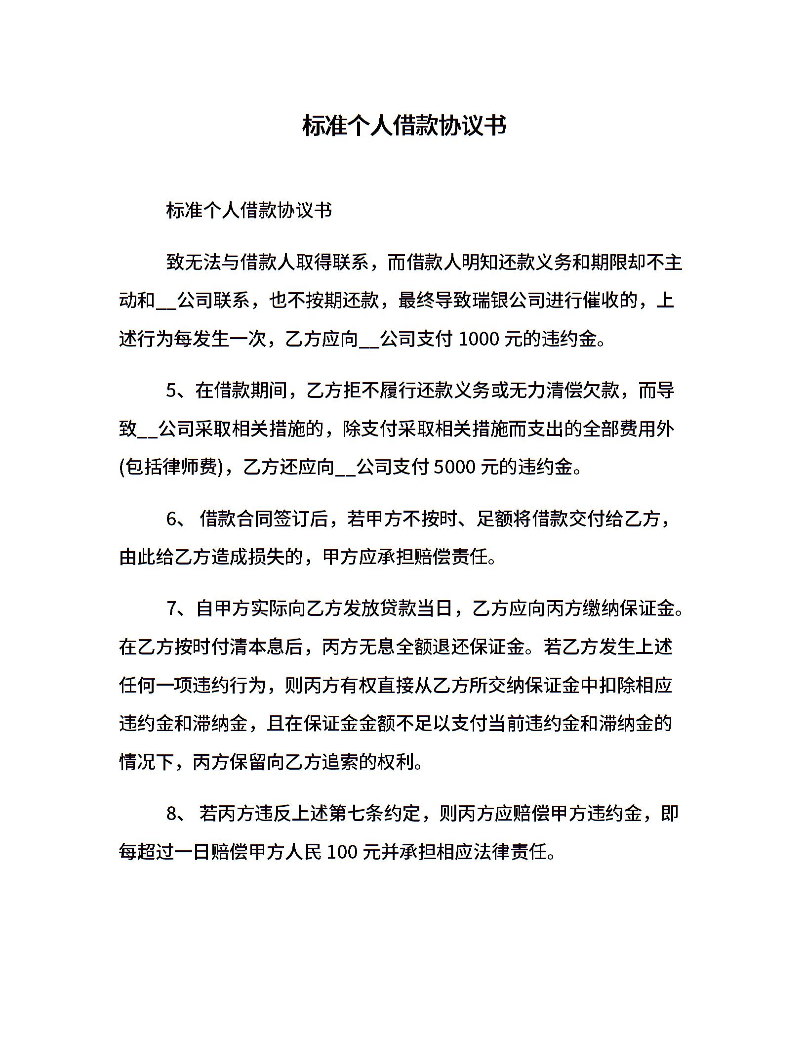 标准个人借款协议书