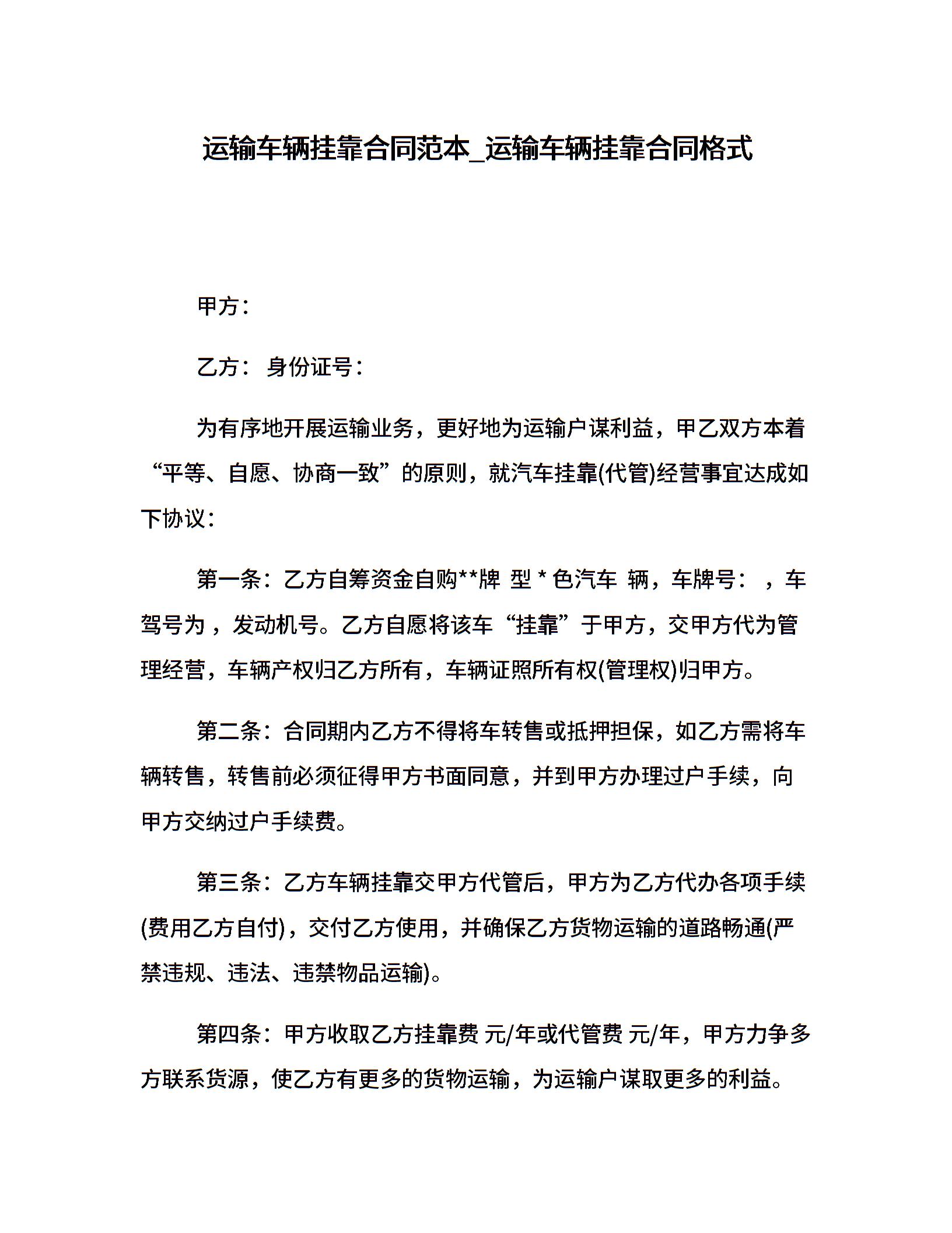 运输车辆挂靠合同范本_运输车辆挂靠合同格式