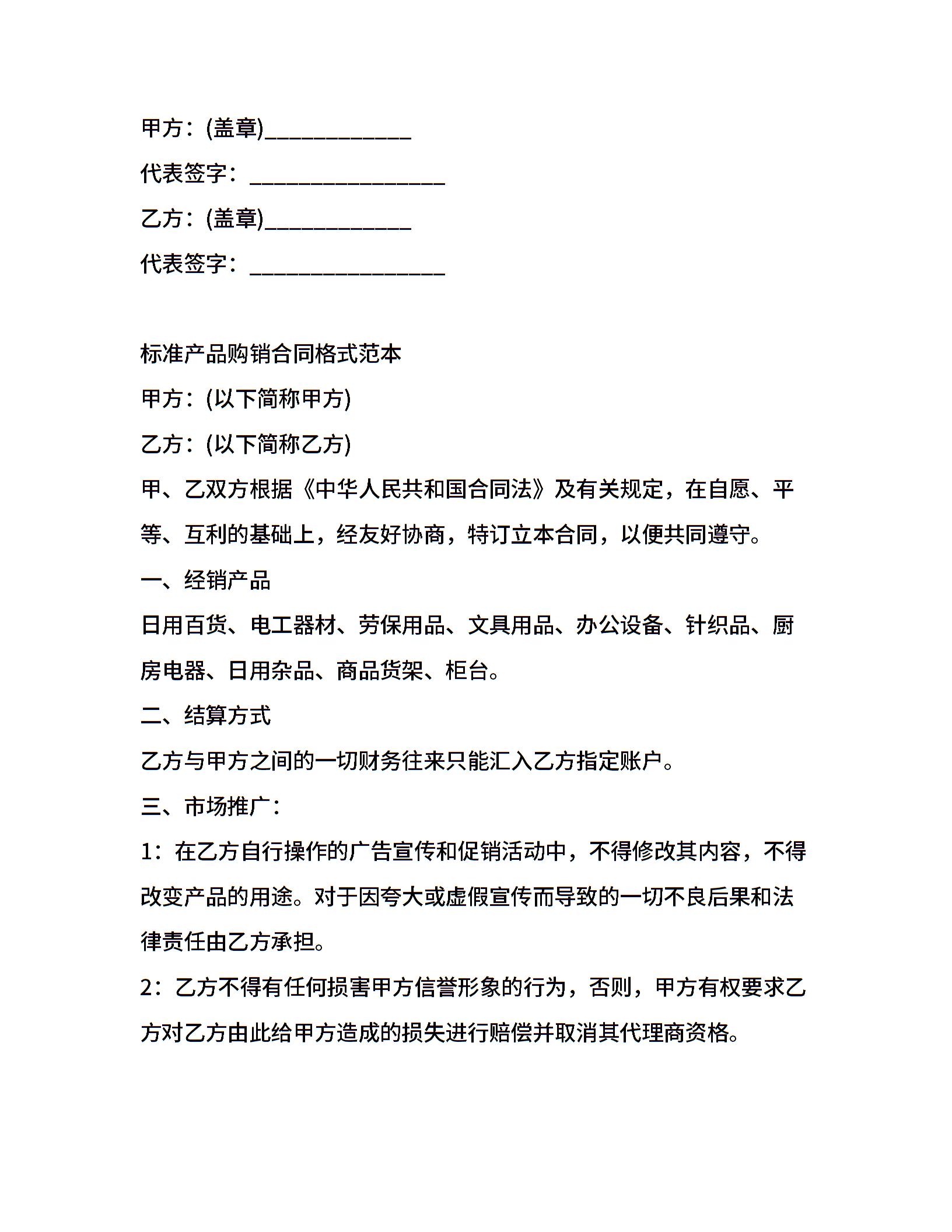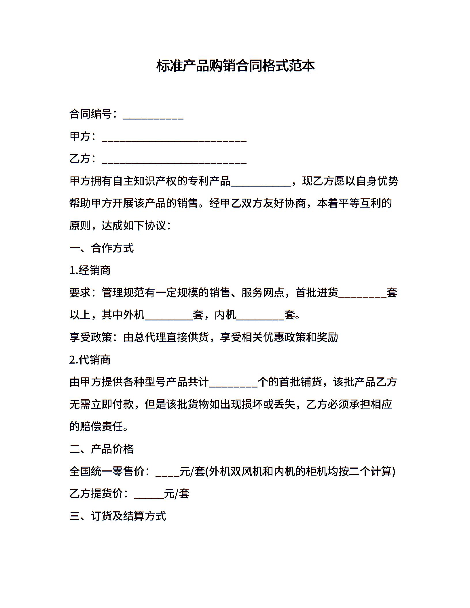 标准产品购销合同格式范本