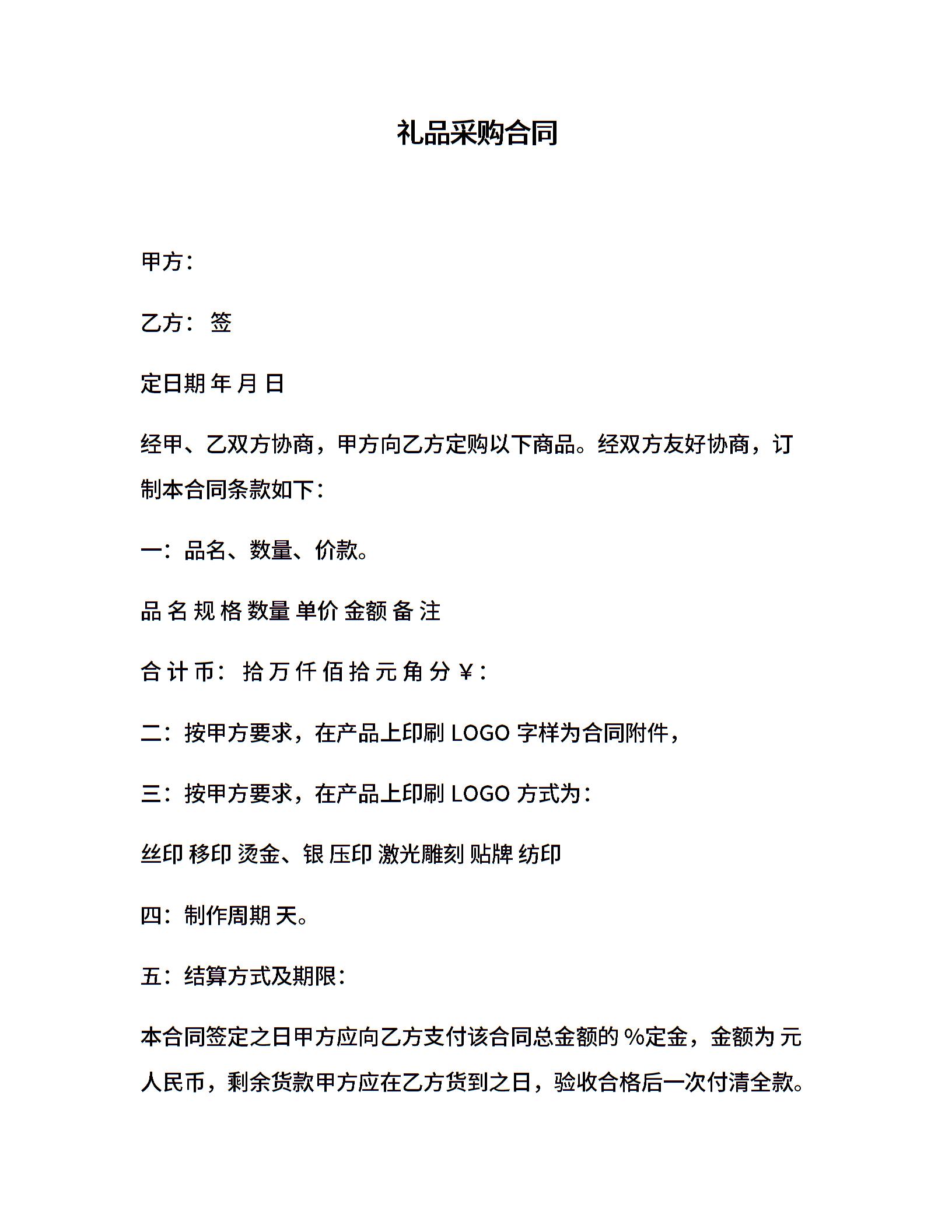 礼品采购合同