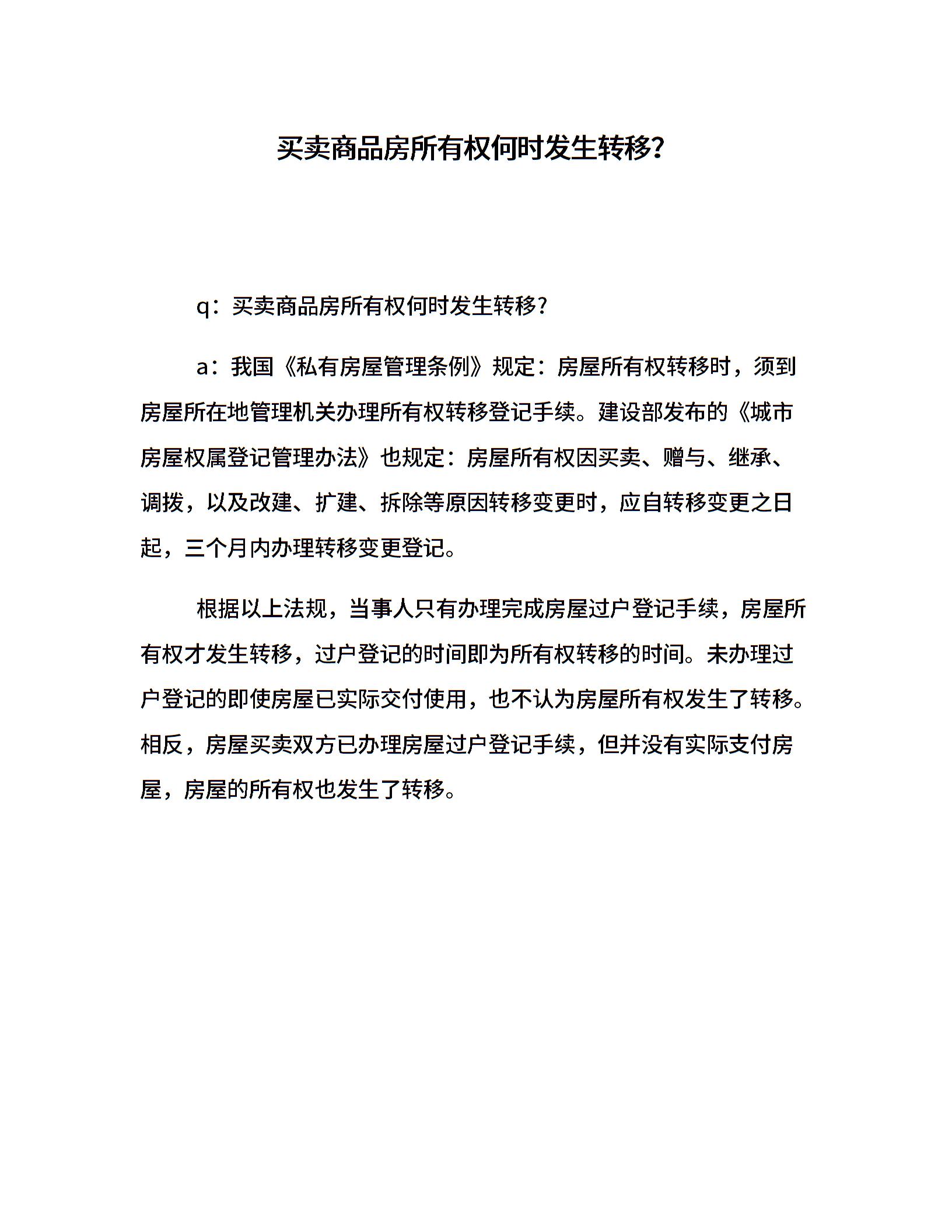 买卖商品房所有权何时发生转移?