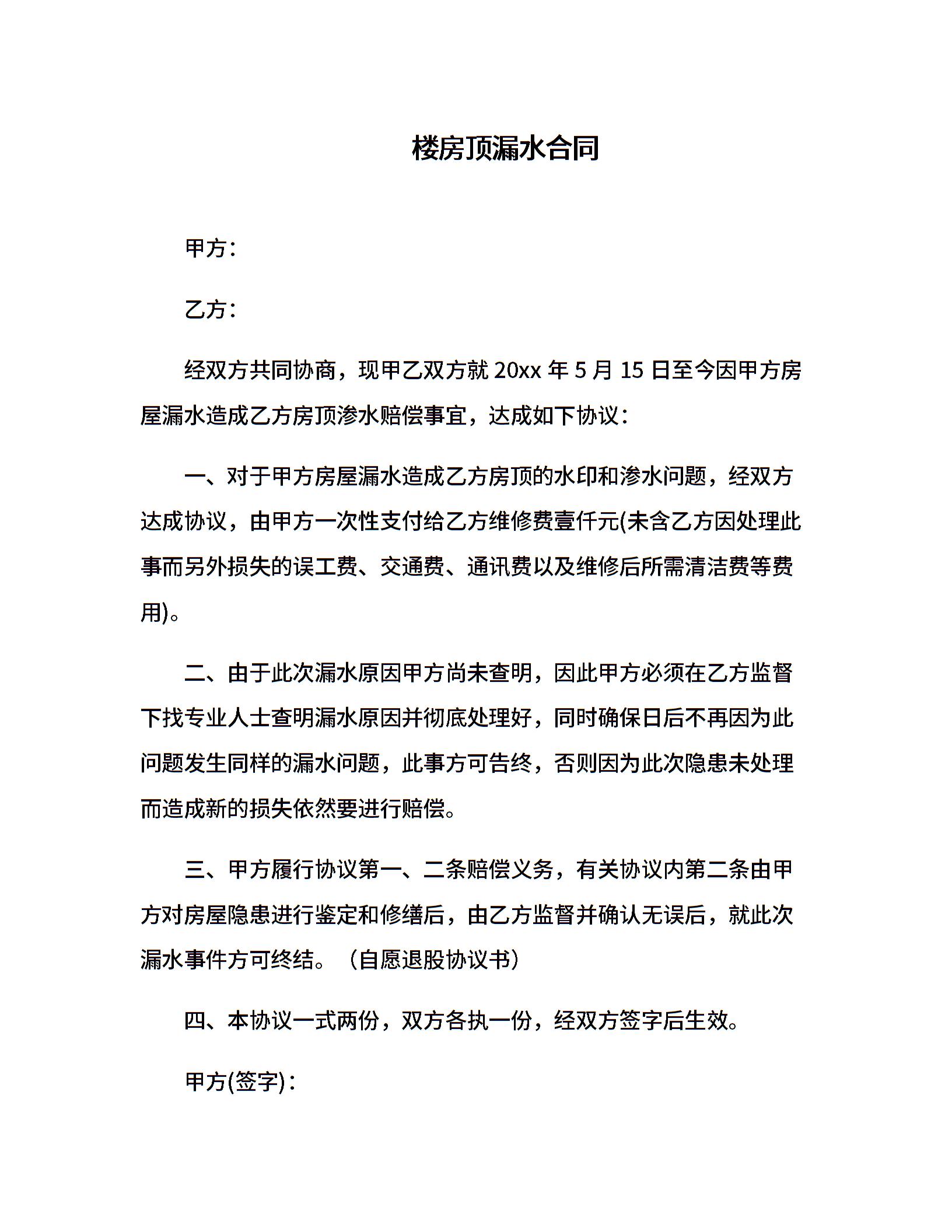 楼房顶漏水合同
