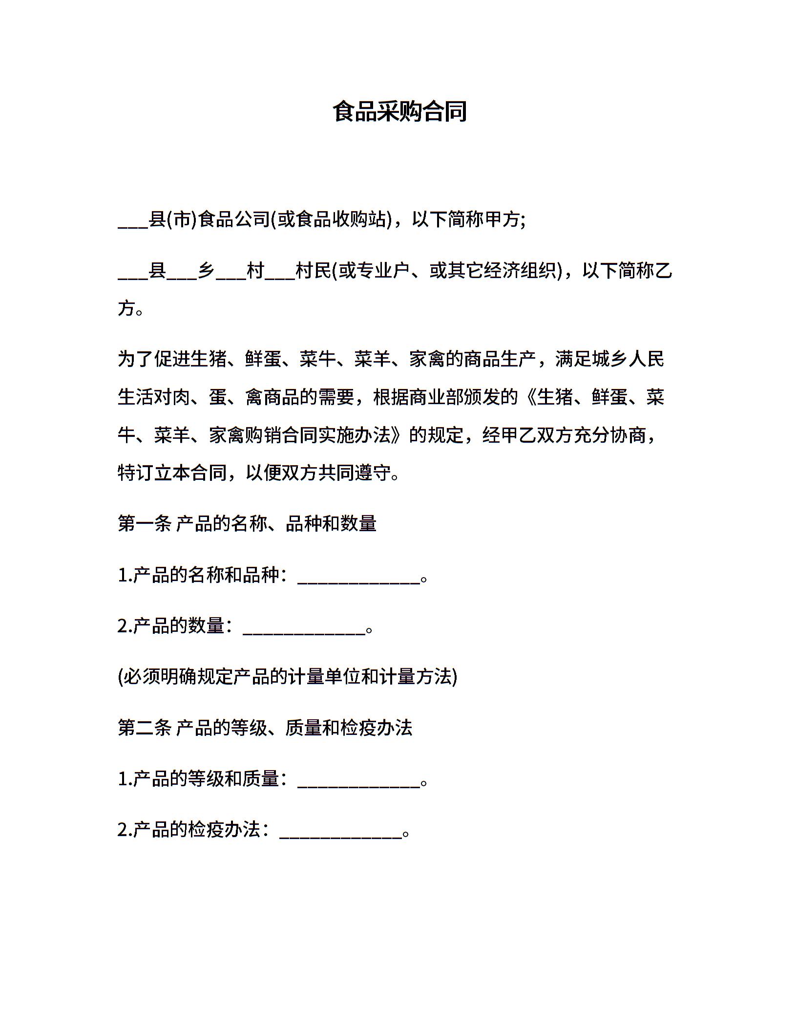 食品采购合同