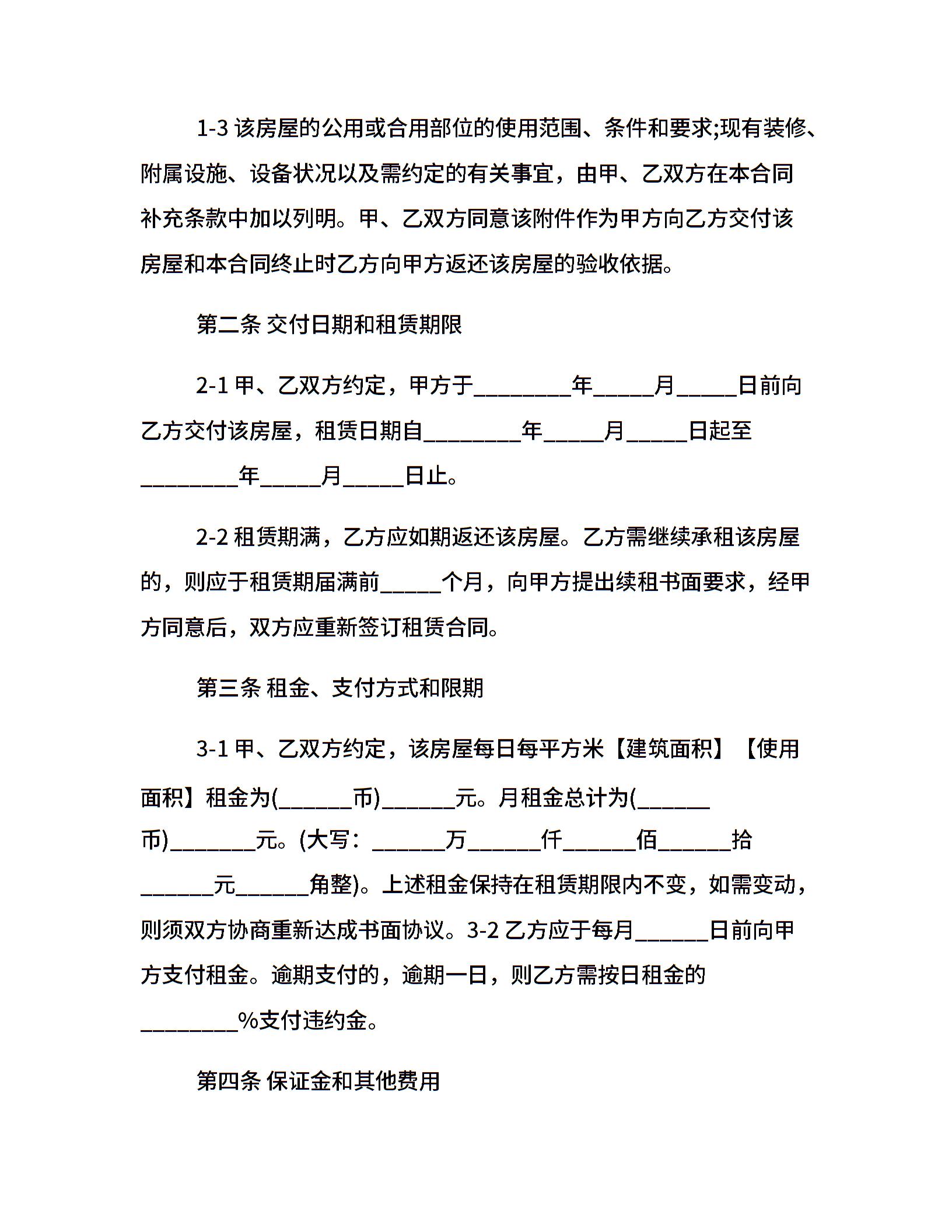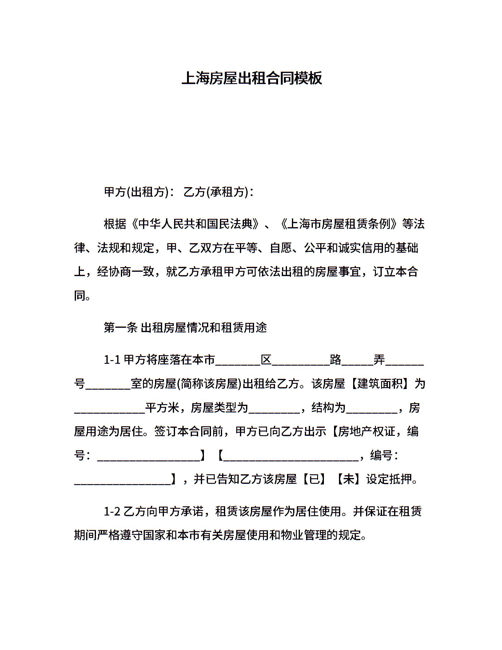 上海房屋出租合同模板