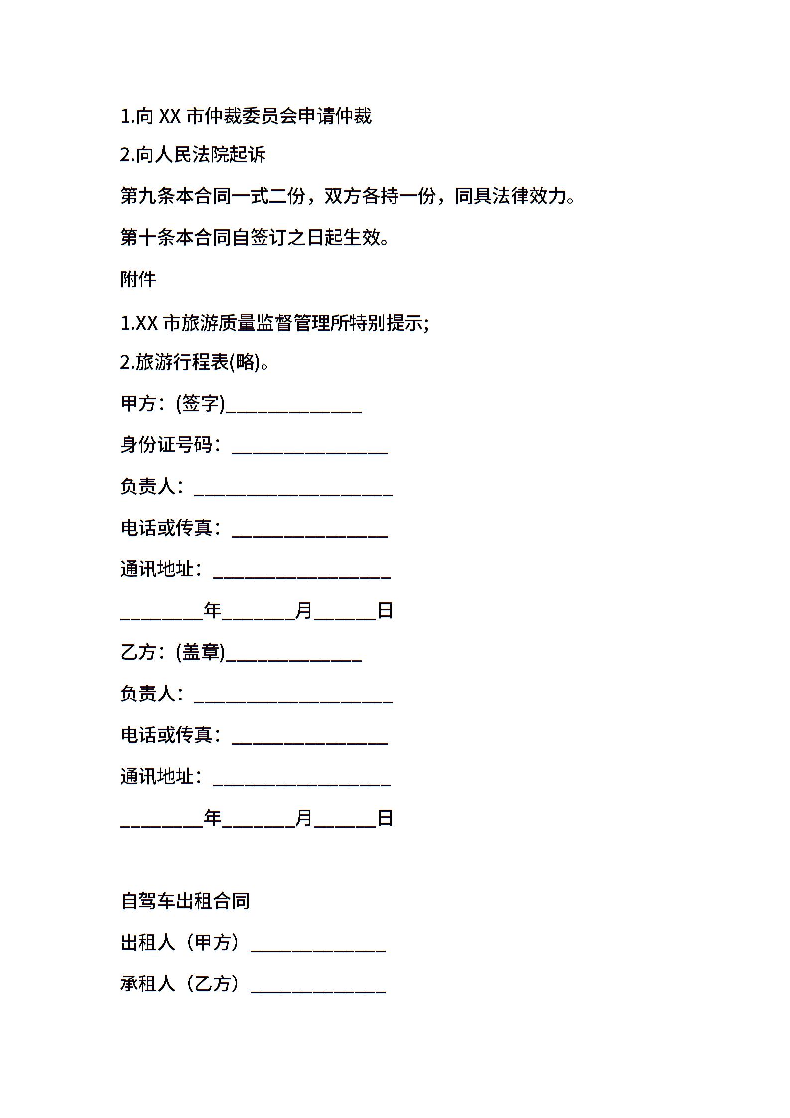 有关XX市自驾车旅游服务合同